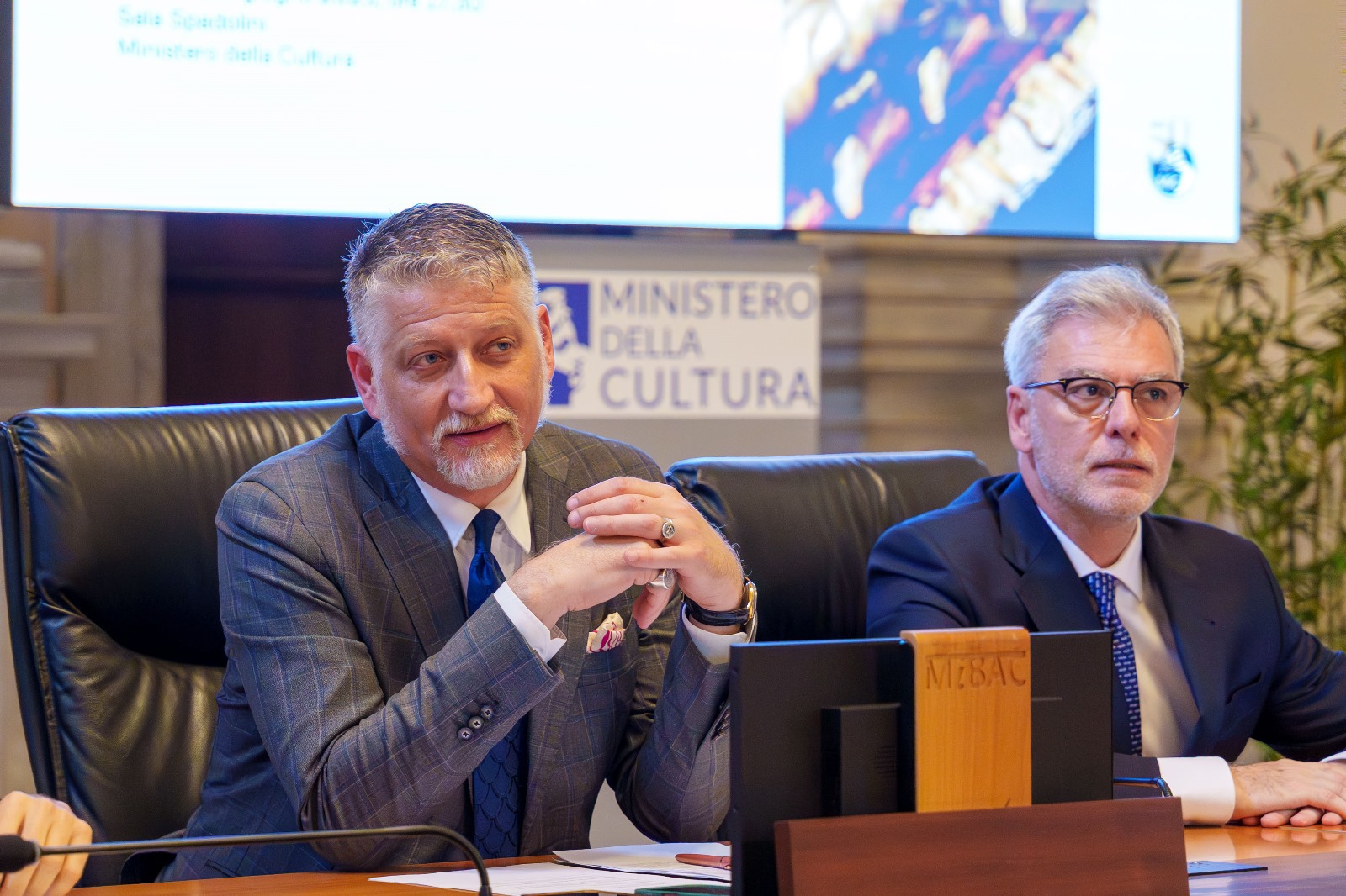 Il ministro della Cultura Alessandro Giuli e Federico Mollicone, presidente della Commissione Cultura della Camera