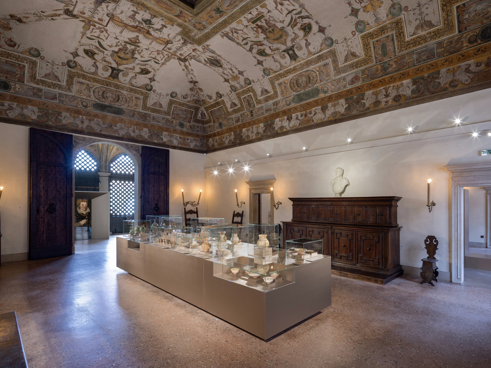 Sotto gli eleganti soffitti a grottesche attribuiti al Bastianino, ora opportunamente valorizzati dall’illuminazione diffusa, otto sale propongono una nuova narrazione, attraverso 162 oggetti, integrazioni multimediali e supporti espositivi multisensoriali, in cui si intrecciano storie e personaggi. Ogni stanza approfondisce una tematica, come la Sala delle imprese, dedicata a Francesco d’Este, la Loggetta dove è affrescato un delicato ritratto di Marfisa da bambina, la Sala dei banchetti, lo Studiolo, che risuona di delicati madrigali, la Sala Grande con la ricca collezione di ceramiche da tavola, la Sala del Camino, in cui la disposizione degli oggetti rende omaggio alla peculiare visione di Barbantini di un «Rinascimento evocato». Come ha sottolineato Ethel Guidi, dirigente del Servizio Cultura, Turismo e rapporti con l’Unesco, «l’obiettivo è che tutti i visitatori possano sentirsi a loro agio nelle stanze, e comprendere il luogo in cui si trovano, senza barriere fisiche, cognitive o sensoriali».