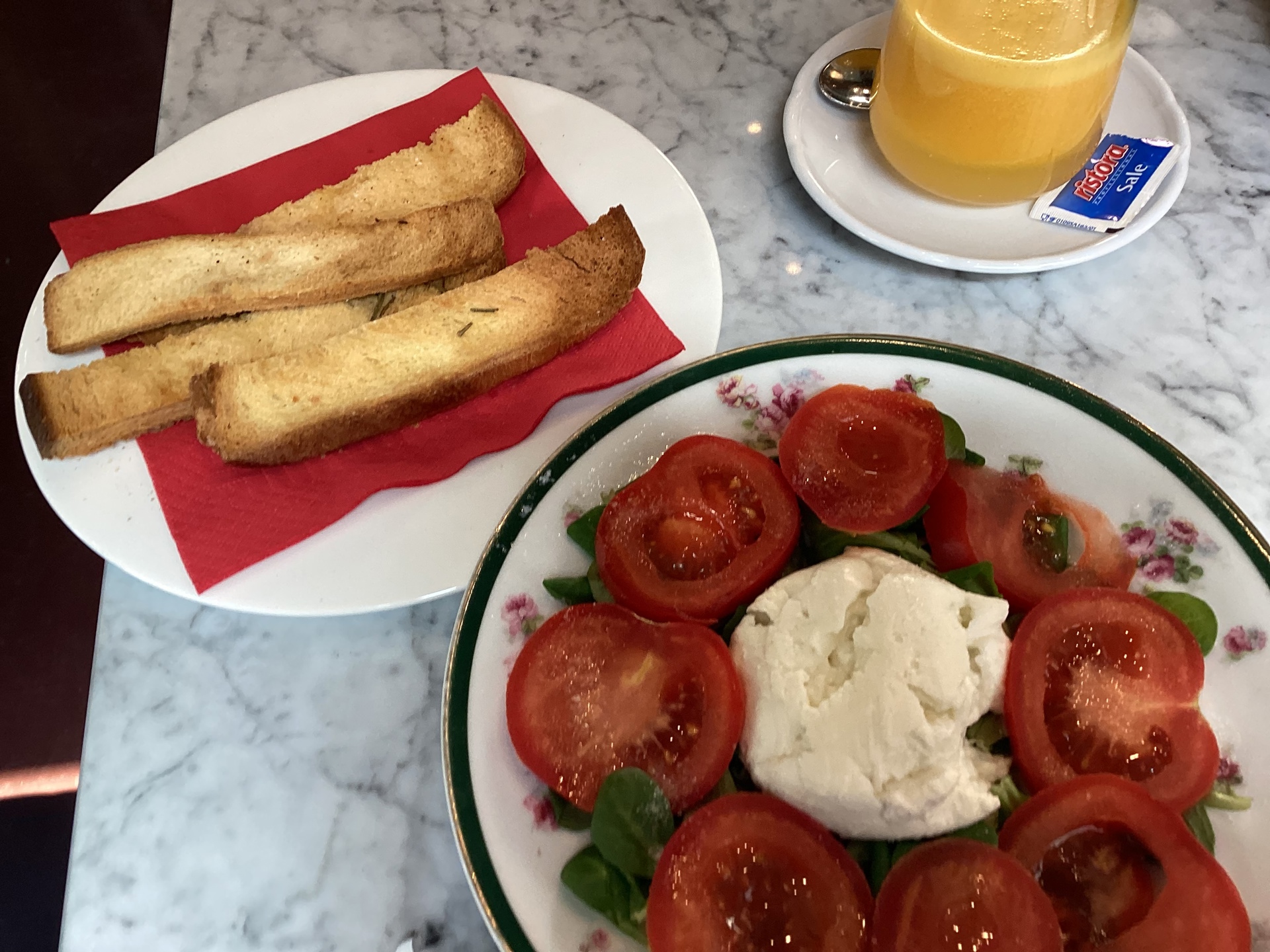 Caprese e spremuta al Caffé Massimo del Museo Nazionale Romano