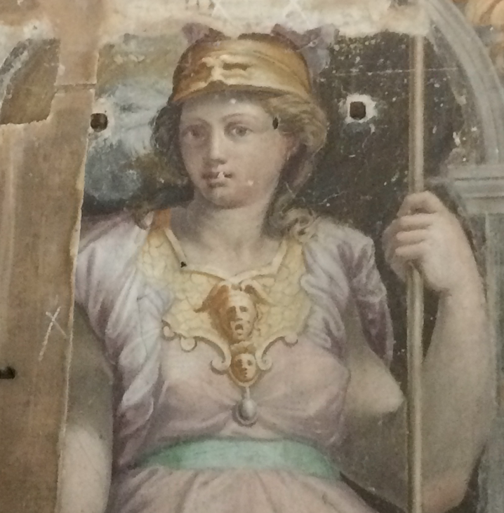 Un particolare degli affreschi rinvenuti a Villa Rivaldi attribuiti alla scuola di Perin del Vaga