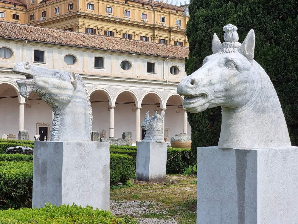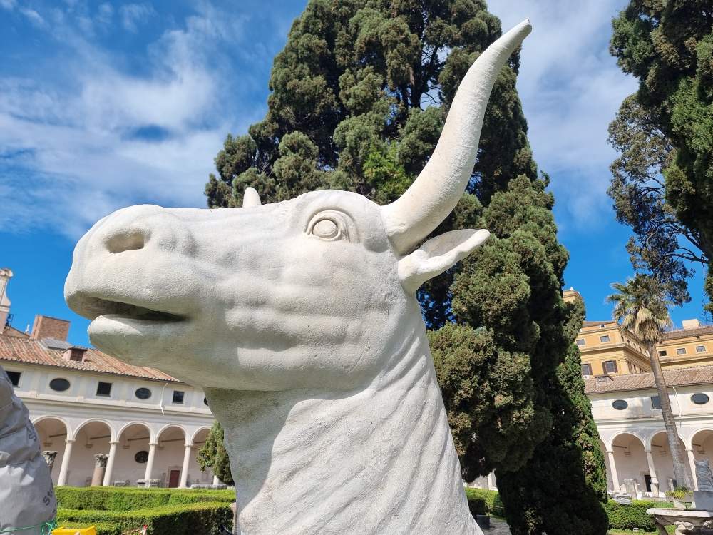 Leggi i suoi articoliÈ dal primo momento in cui si è insediato che il direttore del Museo Nazionale Romano Stéphane Verger ha in mente il chiostro di Michelangelo al Museo delle Terme di Diocleziano, il suo restauro e la sua rivitalizzazione. A partire dalle magnifiche sette teste di animali che, a due a due, sorvegliano gli accessi alla fontana posta al centro del giardino. Tutte di marmo proconnesio, varietà di marmo bianco tra le più diffuse nella statuaria romana antica, rinvenute tra il 1586 e il 1593 in un punto imprecisato dell’area della Colonna traiana, in realtà solo quattro di esse sono antiche, di età adrianea (un dromedario, un cavallo, due tori), mentre le altre tre (un ariete, un elefante e un rinoceronte, quest’ultimo che riprende la celebre incisione di Dürer del 1515, l’unica immagine allora in circolazione di rinoceronte asiatico) sono rinascimentali.