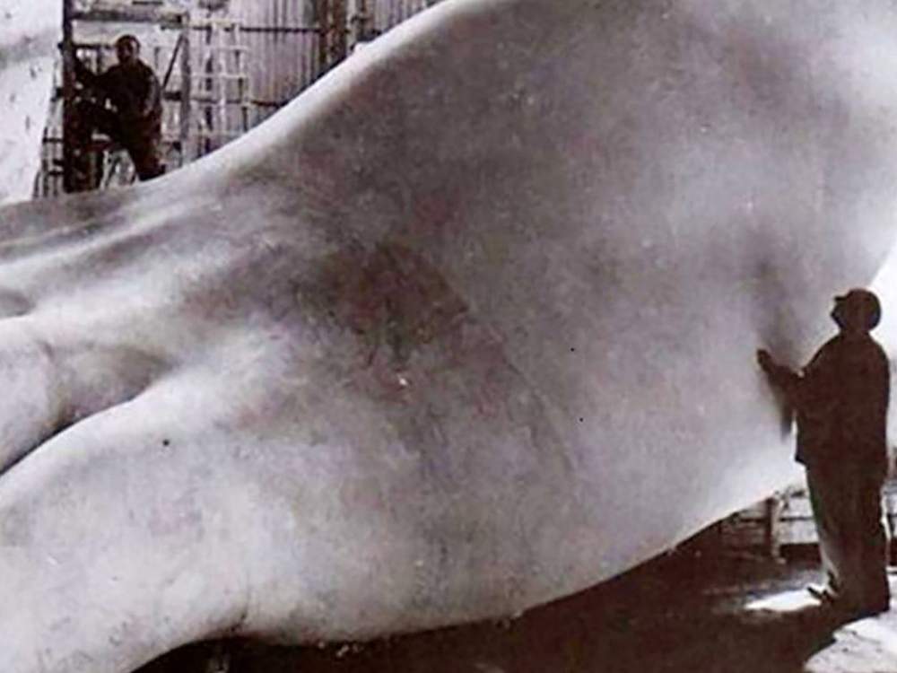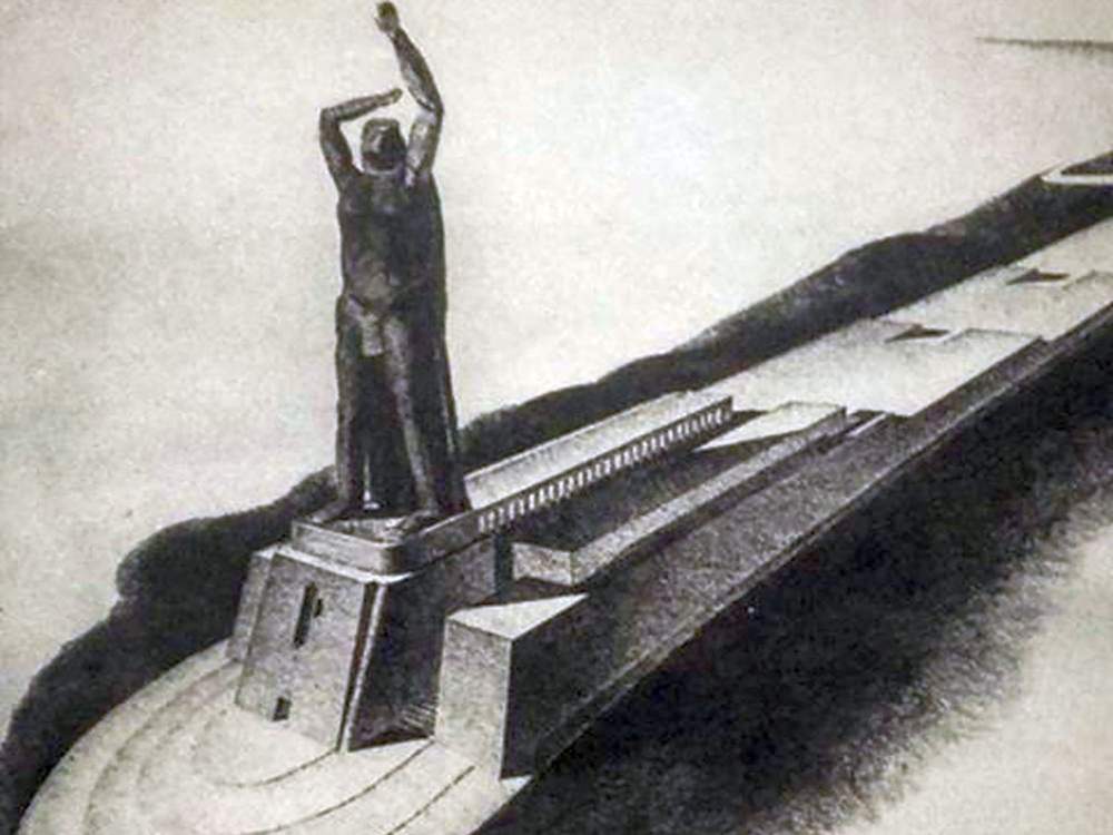 Solo che questo Colosso di cinquemila tonnellate, alto 107 metri compresa la base di 20 (secondo altre fonti 128 metri di altezza con i 35 del plinto: avrebbe superato la Statua della Libertà di New York di 93 metri e rivaleggiato con i 137 metri della Cupola di San Pietro), possedeva i connotati del duce. Le gambe divaricate a compasso, le braccia alzate verso il cielo, la sinistra forse proiettata nel saluto romano. Era previsto che i visitatori salissero in cima, con due ascensori interni alle gambe della statua, ad ammirare uno splendido panorama sulla città. Nel 1937 se ne fondono alcune parti; ne restano le immagini, impressionanti, delle sagome del testone e del piede destro; e qualche progetto.