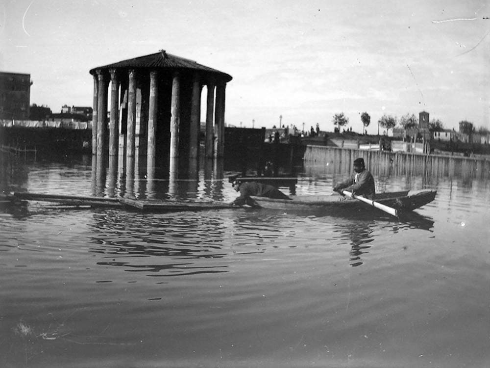 Il tempio di Ercole nel 1900 durante una piena del Tevere