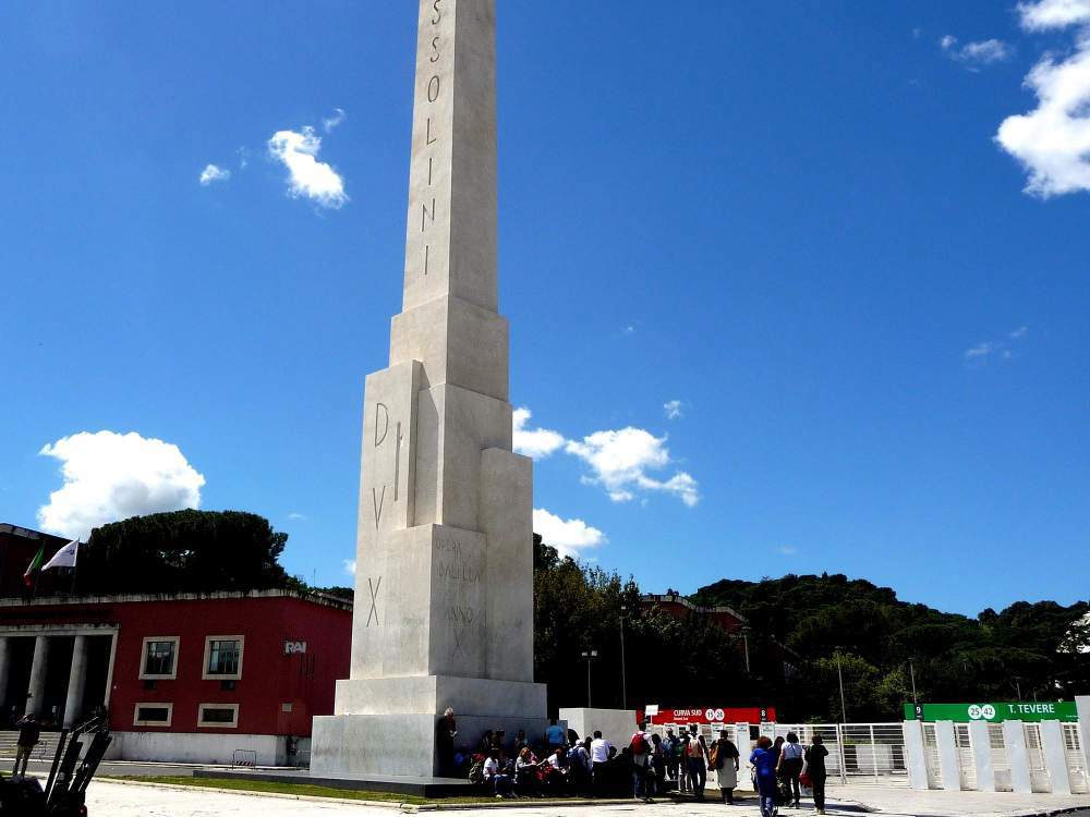 A Roma, invece, la maggiore reliquia è l’obelisco del Foro Italico, alto 36 metri e mezzo con la base che, incisa nel marmo di Carrara, reca la scritta «Mussolini dux». Trecento tonnellate di peso, dopo il viaggio via mare è l’ultimo grande trasporto sul Tevere: le immagini dell’Istituto Luce del 1932 ne mostrano tutta la complessità. Di recente due studiosi degli atenei di Groninga e Lovanio, Bettina Reitz-Joosse e Han Lamers, studiando i documenti d’archivio hanno ricostruito una sorta di magniloquente «messaggio ai posteri» voluto dal duce e ancora sepolto sotto la base del monolite. A scriverlo in latino è un professore universitario, Aurelio Giuseppe Amatucci. È in tre parti: la prima racconta la genesi del fascismo e parla di Mussolini come di una sorta d’imperatore o uomo della provvidenza; la seconda riguarda la gioventù fascista; la terza è dedicata alla nascita del Foro Italico, allora intitolato al reggitore dell’Italia.