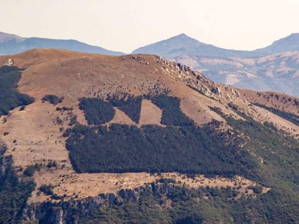 L’enorme scritta nel verde, con la parola «Dux», formata dai pini di Monte Giano, ad Antrodoco (Ri)