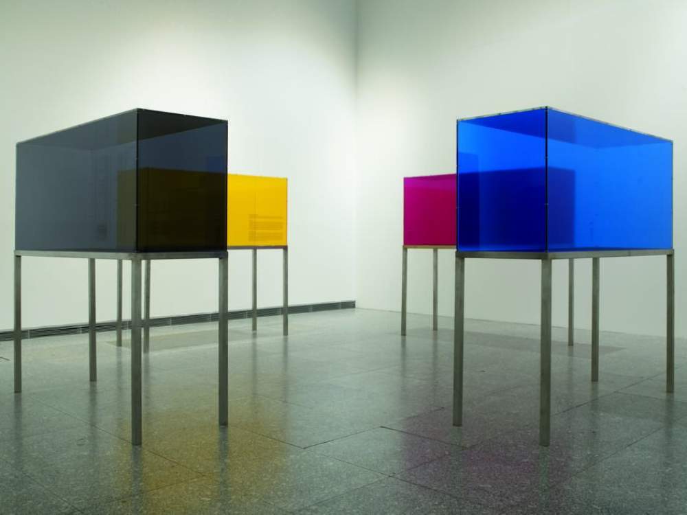 «Vitrines CMYK» (2011) di Ignasi Aballi, Barcellona, Macba, 2022. Foto Miquel Coll