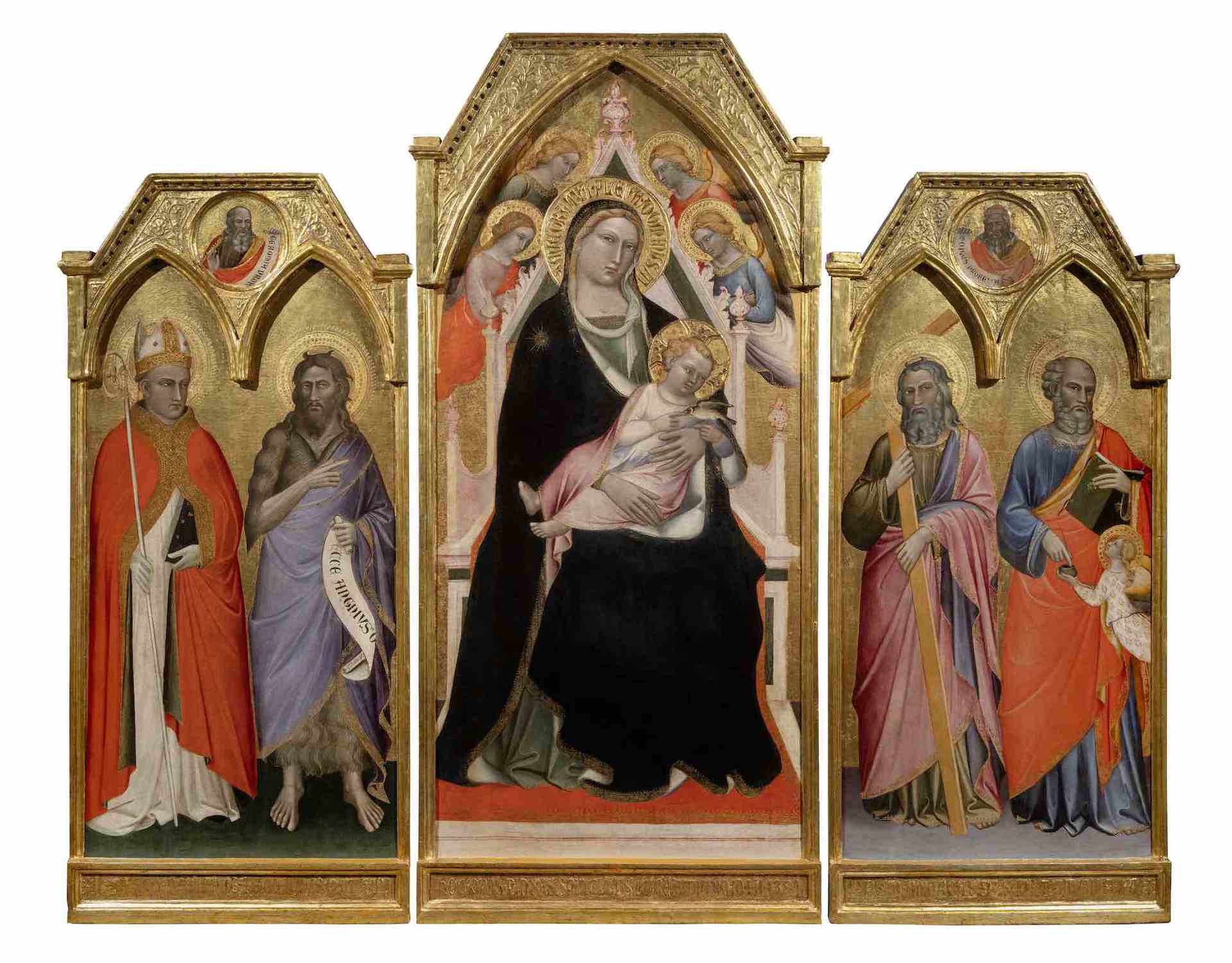 Leggi i suoi articoliConcluso il restauro del Trittico di Spinello Aretino raffigurante «La Madonna col Bambino in trono, quattro angeli e santi», dipinto, firmato e datato 1391 in un momento di frequenti spostamenti del pittore tra Firenze, Pisa e Lucca e cruciale per la ricostruzione della sua carriera. L’opera fu commissionata dal mercante lucchese Paolino di Simonino di Bonagiunta per l’Oratorio di Sant’Andrea a Lucca, cui rimanda la scelta stessa dei santi che figurano: Paolo, il nome del committente, Giovanni (Battista) e Matteo, quelli dei suoi fratelli che furono poi gli esecutori testamentati della committenza, attuata come da lui stabilito dopo la sua morte, e Andrea, cui è dedicato l’Oratorio a cui il trittico era destinato. Nei tondi superiori sono i profeti Geremia e Mosé.