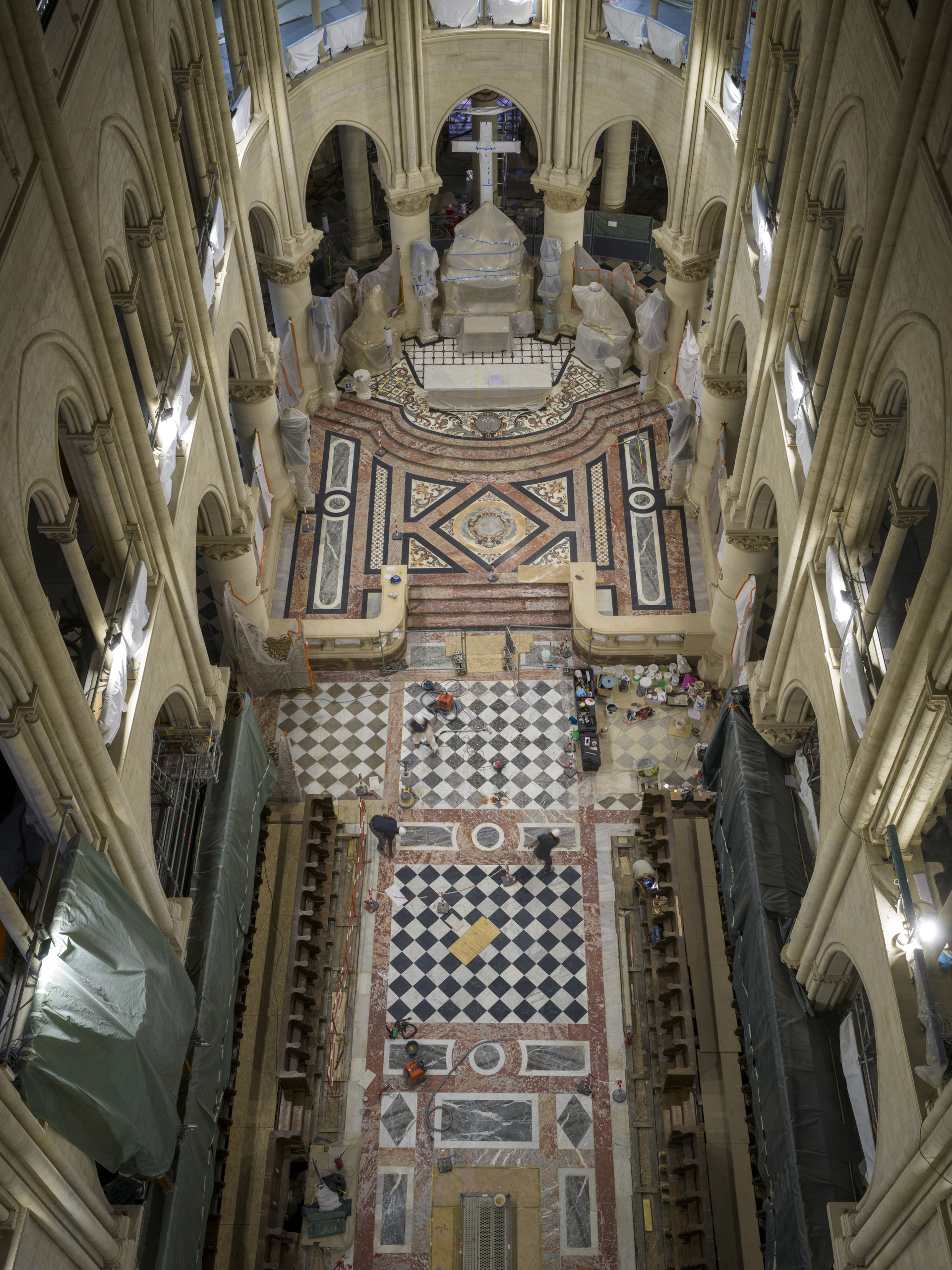 Una veduta dall’alto del coro di Notre-Dame. Foto: David Bordes. © Rebâtir Notre-Dame de Paris