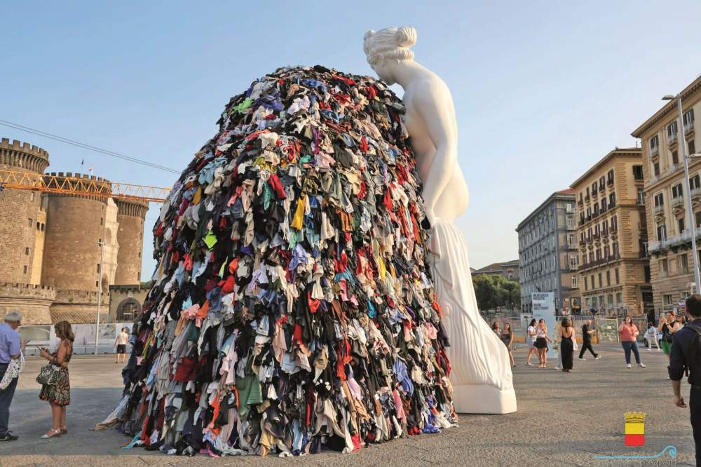 Collocata il 28 giugno, quella gigantessa, ha celebrato nella maniera più traumatica l’accensione e lo spegnimento (ad opera dei pompieri) di una immensa candelina di compleanno. Paolo Naldini, direttore di Cittadellarte, il quartier generale o Factory di Pistoletto a Biella, ha pubblicato i costi totali dell’operazione (203mila euro) e ha specificato che si tratta di una donazione alla città da parte dell’artista e della Fondazione a lui intitolata: «Questa operazione per Napoli è stata decisa da Michelangelo e dal Consiglio di amministrazione perché avrebbe costituito un importante segnale per la moda globale, proprio nei mesi in cui il dibattito internazionale sulla sostenibilità dell’industria tessile sta compiendo importanti passi avanti, anche grazie a chi come noi dal 2009 opera per sensibilizzare gli attori della filiera e i consumatori, come sanno coloro che hanno seguito i nostri lavori con le Nazioni Unite e con la Camera Nazionale della Moda (...). La grande Venere di Napoli, ha aggiunto il direttore, non è cresciuta rispetto alle dimensioni dell’opera del 1967 in relazione all’ego di un artista, e neanche soltanto perché la Piazza del Municipio di Napoli ha dimensioni e proporzioni tali da imporre riflessioni importanti sulla spazialità dell’opera, ma soprattutto perché sono enormemente cresciuti la produzione e gli scarti tessili che oggi soffocano la Terra (...). È cresciuta la mole di stracci, quindi, ed è cresciuta anche la Venere che rappresenta l’umanità sulla Terra».