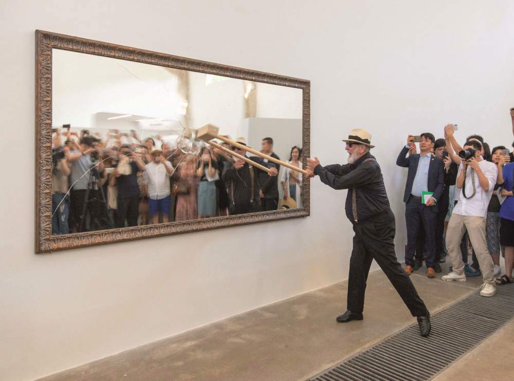 Se la vasta retrospettiva fino 25 al febbraio 2024 al Castello di Rivoli, a cura di Carolyn Christov-Bakargiev e Marcella Beccaria, spazierà su tutta la produzione di Pistoletto, la mostra allestita la scorsa primavera a Palazzo Reale a Milano, a cura di Fortunato d’Amico, ha posto l’accento sugli ultimi trent’anni di attività dell’artista biellese, una fase in cui si è affermato come una sorta di Joseph Beuys 2.0. Come Beuys è impegnato sul fronte ambientalista. Beuys è lo sciamano che, il volto dipinto di miele e oro, culla una lepre morta a cui spiega il significato dei quadri appesi alle pareti in una performance del 1965 o che coabita con un coyote in una celebre performance del 1974. Pistoletto è invece il profeta della «Pace preventiva» (questo il titolo della mostra milanese) che con la furia di un Cristo che devasta i banchi dei mercanti nel tempio rompe alcune decine di specchi.