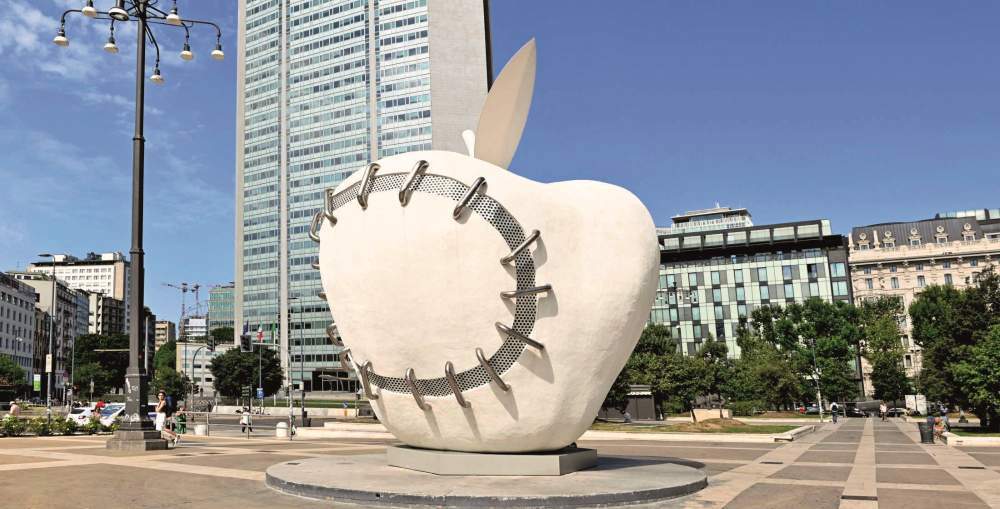 A volte le influenze sono recidivanti. Ha qualcosa di Pop, molto alla Oldenburg, anche la già citata grande «Mela reintegrata» del 2016 installata a Milano. Sarà anche per le cuciture, che la rendono un po’ yankee come una palla da baseball, come ha notato Bonami. Però poi, almeno nell’intento, ricorda un po’ lo stile di Cattelan, che del Pop è un altro discendente: quella che è reintegrata con una toppa è infatti la celeberrima mela morsa della «Apple». «L’arte, per me, è un atto eroico, non è routine né fossilizzazione», ha dichiarato a «Il Giornale dell’Arte».