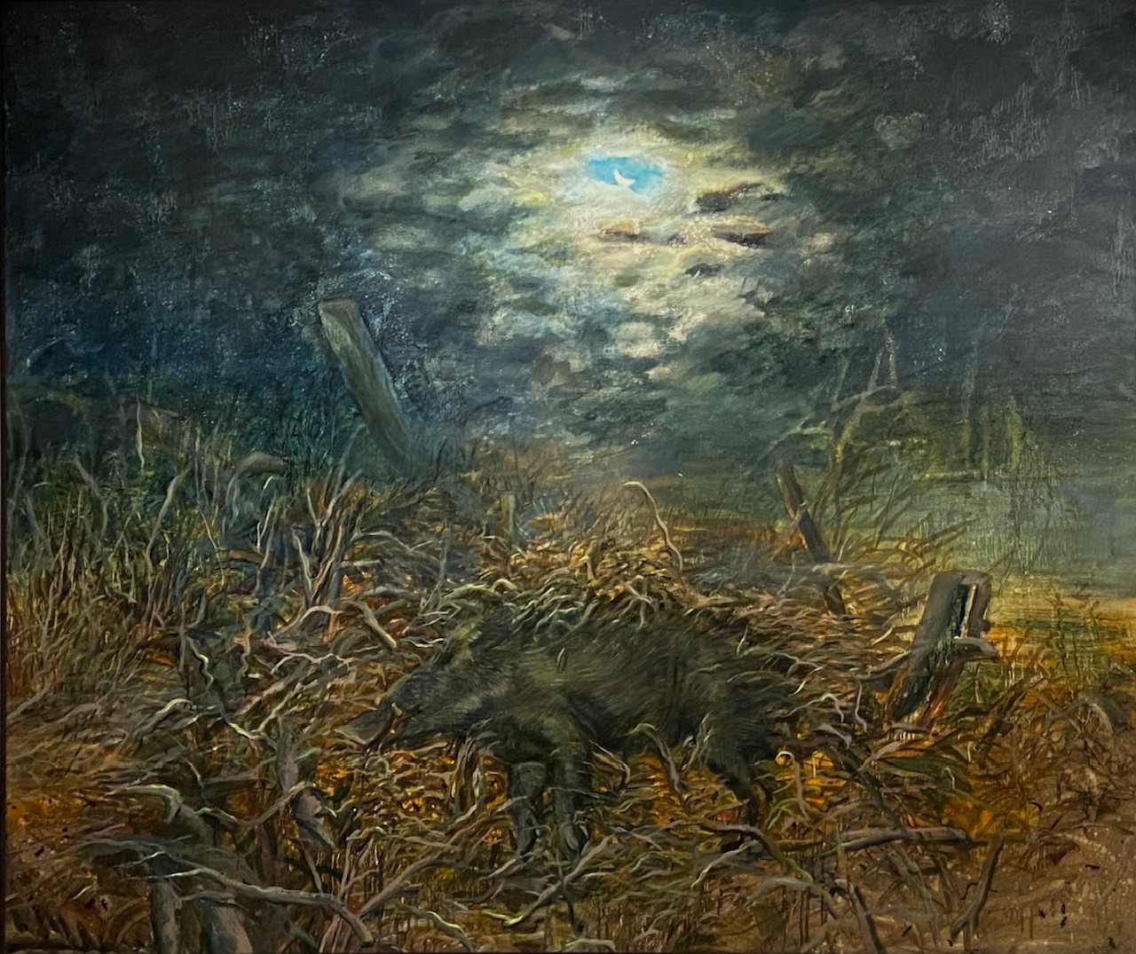 La tela più piccola, Il sogno si è avverato!, mostra insetti sulla Luna. Oggi sento la mia identità più legata al paesaggio che alla cultura, che è instabile; la natura è eterna. La Luna è quella di Dürer e Munch, gli alberi quelli di Bruegel. In quel quadro si realizza il sogno infantile: gli insetti raggiungono la Luna.