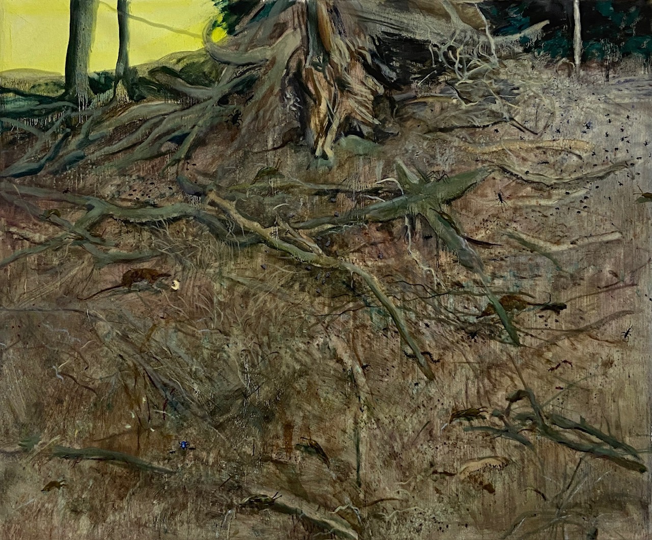 In questa serie di tele sono comparsi molti animali e insetti. Perché il tuo paesaggio statico è diventato così popolato?