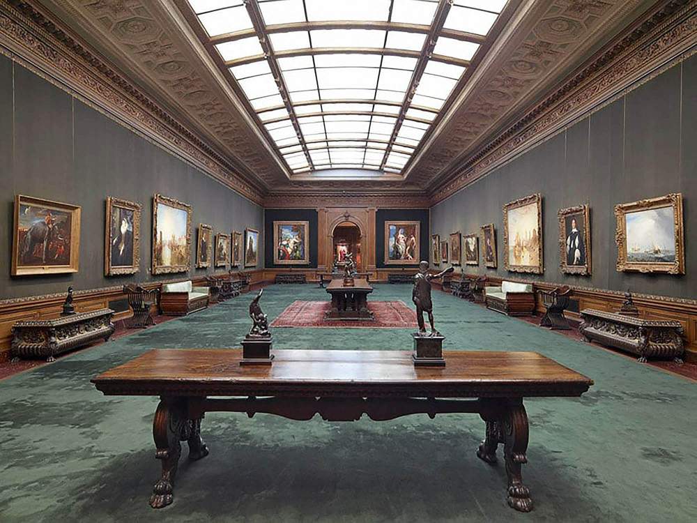 Esposto al centro della Oval Room, si può ammirare il dipinto prediletto dal magnate americano, il «Ritratto del re Filippo IV di Spagna», dipinto da Velázquez nel 1644. Nelle altre sale si possono ammirare dipinti di Cimabue, Claude Lorrain, Edgar Degas, Thomas Gainsborough, Goya, Ingres, Hans Memling e Piero della Francesca, solo per citarne alcuni.