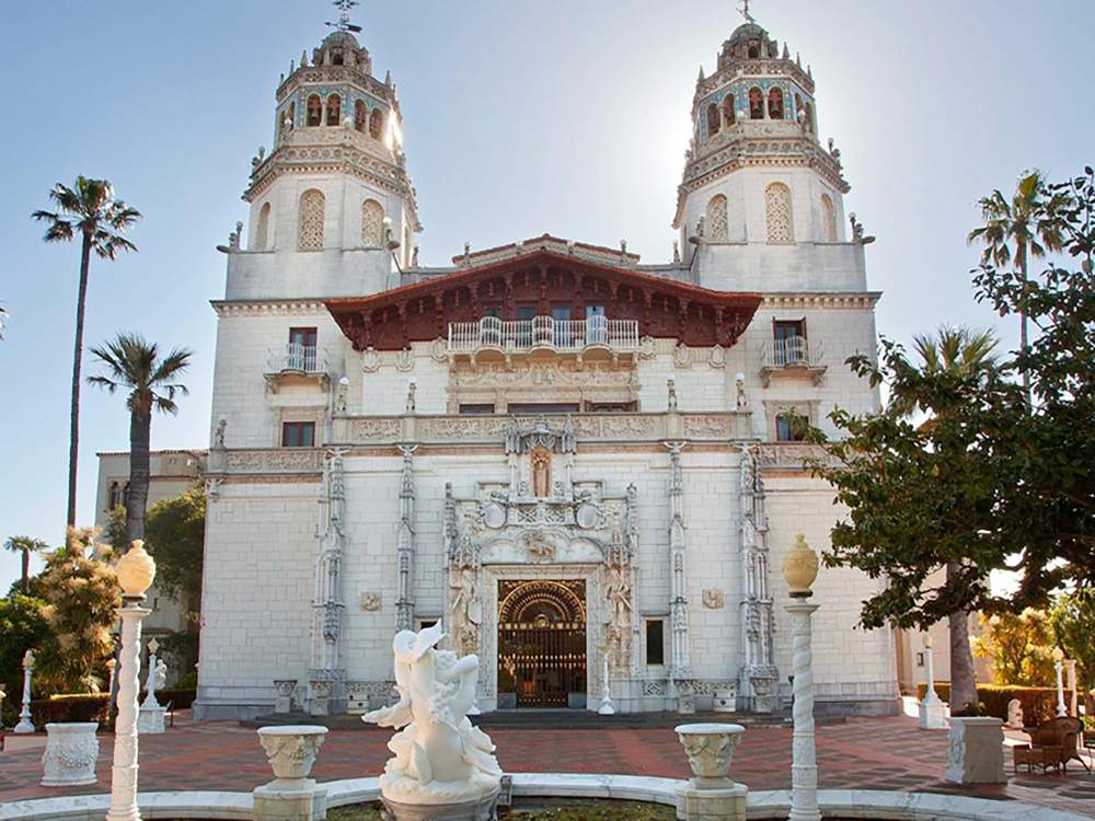 Il magnate commissionò la sua lussuosa ed eclettica residenza in cui organizzò parties memorabili all’architetto Julia Morgan. I lavori iniziarono nel 1919 e proseguirono all’incirca per 30 anni. Lo spettacolare edificio che riflette l’opulenza della Gilded Age ha ospitato il jet set americano: Charlie Chaplin, Cary Grant, Greta Garbo, Buster Keaton, Clark Gable. ma anche politici quali Winston Churchill. Infine ha aperto al pubblico nel 1958.