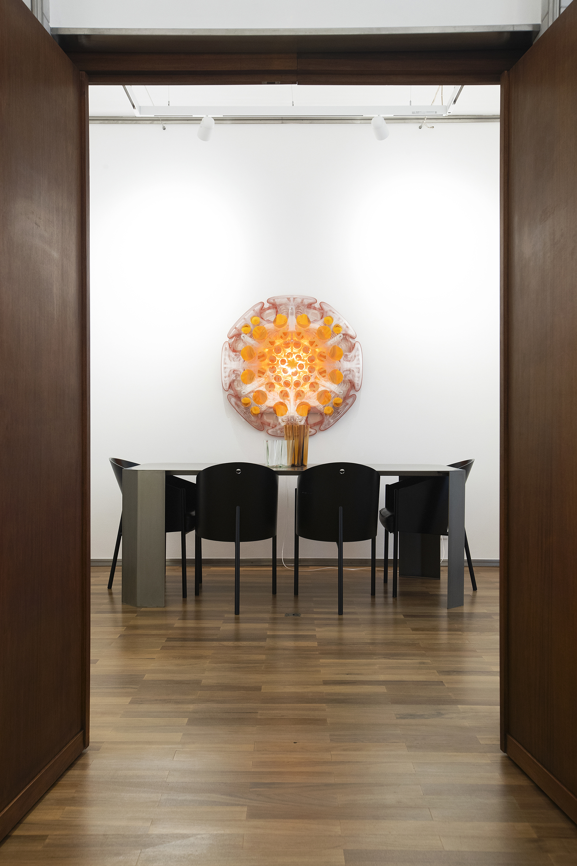 Ieri sera, 23 settembre, ha aperto la prima mostra di Casa Gregotti. L’esposizione riunisce e mette in dialogo voci storiche e contemporanee: Matthew Brannon, André Butzer, Nathalie Djurberg & Hans Berg, Lucio Fontana, Allison Katz, Man Ray, Oliver Osborne, Jorge Pardo, Tai Shani e Alice Visentin. Per dare il via alle collaborazioni con le gallerie ho scelto la Galleria Gió Marconi, con cui ho un legame speciale: è lì che ho fatto la mia prima esperienza lavorativa e che ho iniziato a collezionare, acquistando opere di André Butzer e Nathalie Djurberg & Hans Berg. Per me è una bella opportunità poter proporre ai collezionisti artisti che fanno parte anche della mia collezione personale: un modo per rendere questo progetto più autentico e vicino alla mia esperienza.