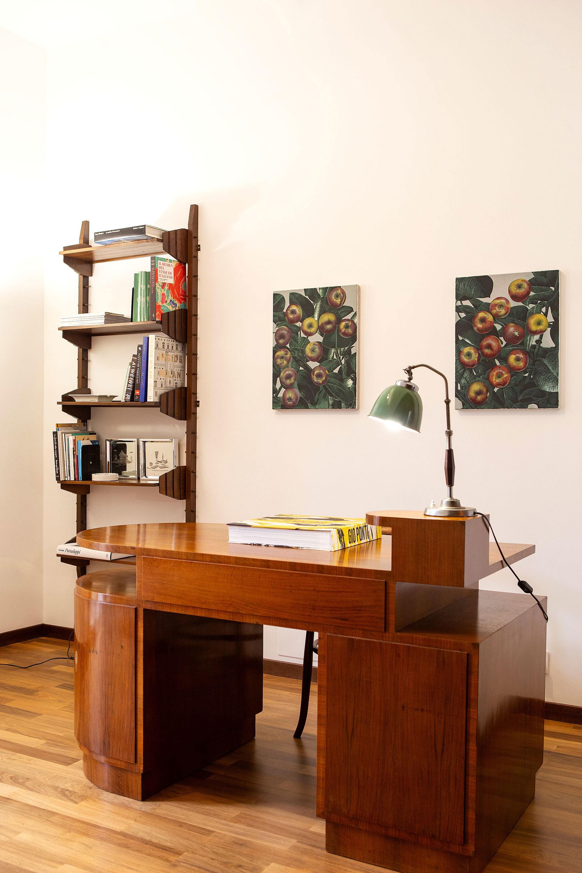 L’abitazione conserva alcuni dettagli originali, come i binari in acciaio nelle sale principali, ai quali tramite bacchette venivano appesi i quadri. È un sistema ormai quasi scomparso nelle case dei collezionisti contemporanei, ma che personalmente apprezzo molto: mi piace moltissimo poter utilizzare ancora queste bacchette, perché trovo che abbiano un fascino unico, dal sapore vintage.