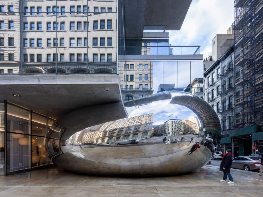Un dibattito simile aveva accolto il completamento a New York, dopo molti anni di ritardo, dell’ultimo «globulo specchiante» di Anish Kapoor, soprannominato «mezzo fagiolo» o «mini fagiolo», in confronto al suo monolite molto più grande, «Cloud Gate» (2004), realizzato a Chicago. L’opera newyorkese si trova incuneata alla base di un condominio, il 56 Leonard, progettato da Herzog & de Meuron e noto come Jenga Tower.