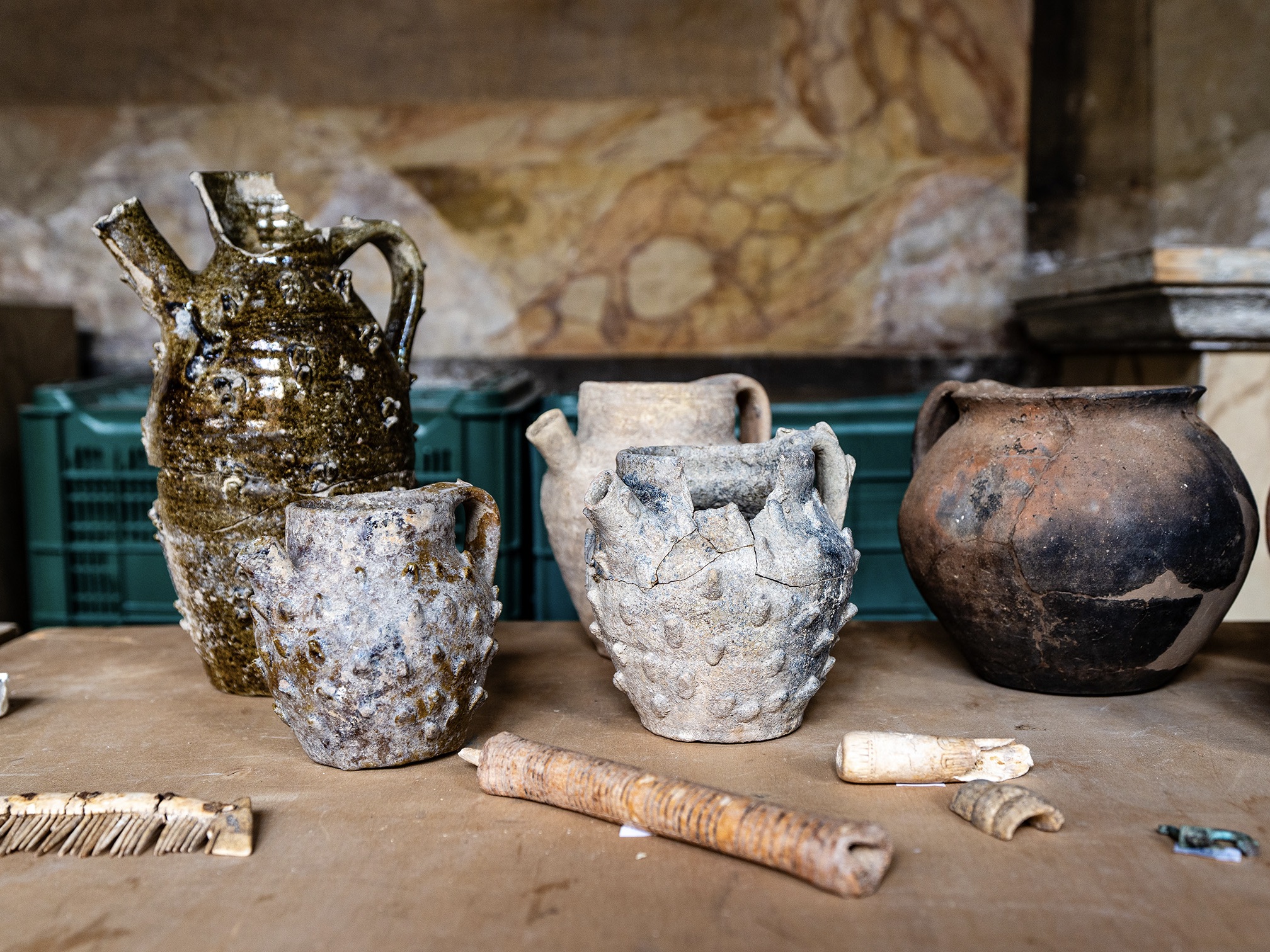«Di grande interesse anche i rinvenimenti medievali e moderni, che arricchiscono le conoscenze storiche e topografiche sull’evoluzione di un’importante area», precisa la soprintendente Daniela Porro. Dal X secolo ci sono tracce di attività produttive, probabilmente legate alla Schola Saxonum, una delle più antiche che si occupavano dei pellegrini in visita alla tomba di san Pietro. A questo periodo risalgono alcuni rari calici vitrei a colonnette usati a scopo liturgico, mentre più tardi diventa preponderante la manifattura dell’osso, sempre strettamente connessa al pellegrinaggio e al culto.