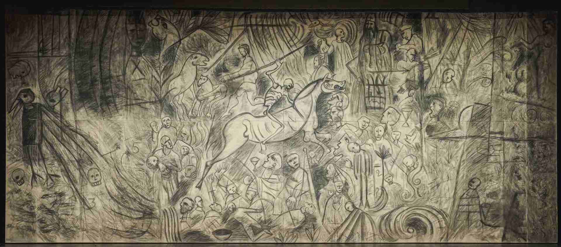Tutti questi artisti, Shakespeare, Verdi, Picasso, Paladino e l’anonimo pittore che ha visto galoppare il cavallo della morte per l’Europa, hanno un assoluto pregio: esprimono temi universali portandosi sulle spalle la cronaca, anche se poi da questa trascendono con il loro visionario linguaggio. È un’opera, questa di Paladino, che ci riconnette alla storia dei popoli e al destino delle Nazioni, che riporta alla luce il dispendio di vite, il lato disumano del progresso e che, nel fare questo, ci risveglia in modo traumatico dall’apatia e dall’assuefazione al dolore degli altri.