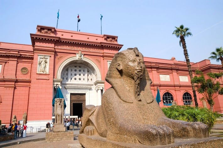 Che peccato che il vecchio museo nella piazza Tahrir sarà svuotato delle migliori collezioni e rimarrà come testimone del bel tempo che fu, quando Il Cairo e Alessandria erano città multietniche e cosmopolite, le vetrine erano di legno con i vetri soffiati, la luce a incandescenza dava ancora di più il senso di mistero e fissava l’epoca delle grandi scoperte nella Valle dei Re a cavallo tra Otto e Novecento, un po’ di polvere e odore di cera non guastavano. Per poco ancora, si può notare la perfetta illuminazione delle sculture come nelle due teste greco-romane. Le vetrine si stanno svuotando nei lunghi corridoi al primo piano, c’è aria di dismissione nel vecchio e fascinoso museo, amato da Agatha Christie e da tutti noi nati a metà del secolo scorso.