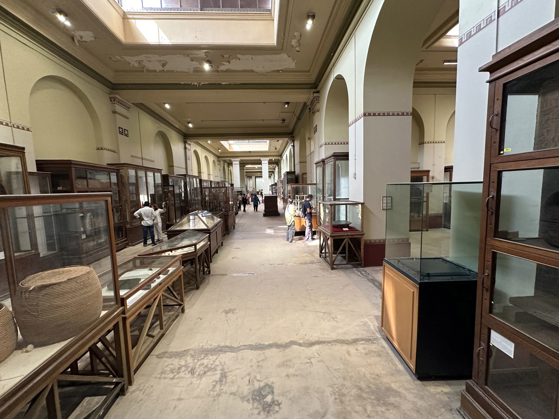 Le vetrine vuote nei lunghi corridoi al primo piano del museo nella piazza Tahrir