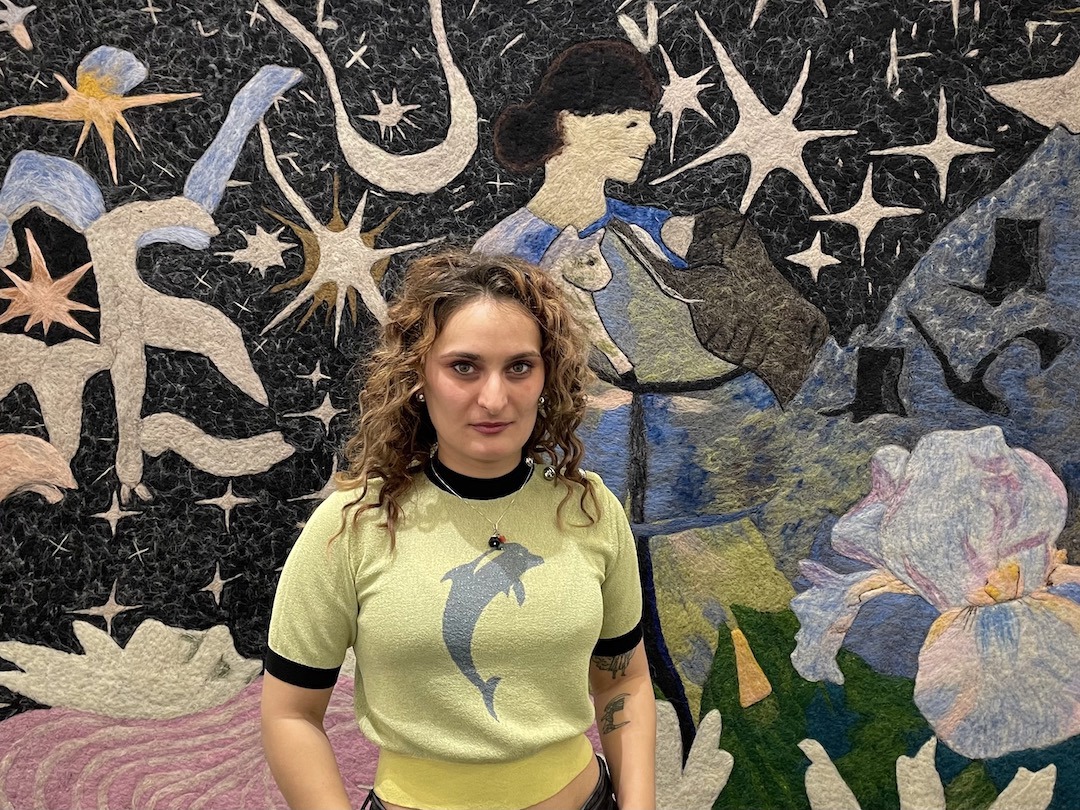 Gvantsa Jishkariani davanti al suo arazzo in feltro. Foto Anna Somers Cocks