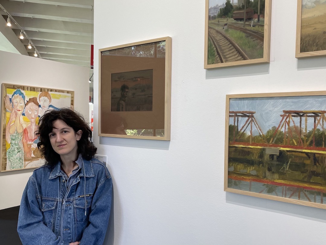 Anche Anouk Belugar, 38 anni, ha studiato all'Accademia di Belle Arti, ma a differenza di Jishkariani ha abbastanza stima dell’istituzione da continuare a frequentarla per esercitarsi nella pittura a olio tradizionale. Si tratta di un realismo socialista puro e semplice o di qualcosa di concettualmente nuovo? In ogni caso, la sua è l’opera di un bastian contrario. Anziché scrollarsi di dosso la polvere del comunismo come tutti gli altri, Belugar guarda a prima dell’Urss e scrive per una piattaforma marxista in controegemonia sugli eventi attuali. È piccola e forte e lavora sodo, ma dipinge en plein air e cammina finché non vede qualcosa che le interessa. Non ha una galleria che la rappresenti e i suoi quadri di piccolo formato erano esposti nella sezione della fiera curata da Schlosser: quattro paesaggi, con due scene dipinte a marzo di quest’anno, ispirate a La terra degli aranci tristi dello scrittore palestinese Ghassan Kanafani, assassinato dalla polizia segreta israeliana nel 1972.