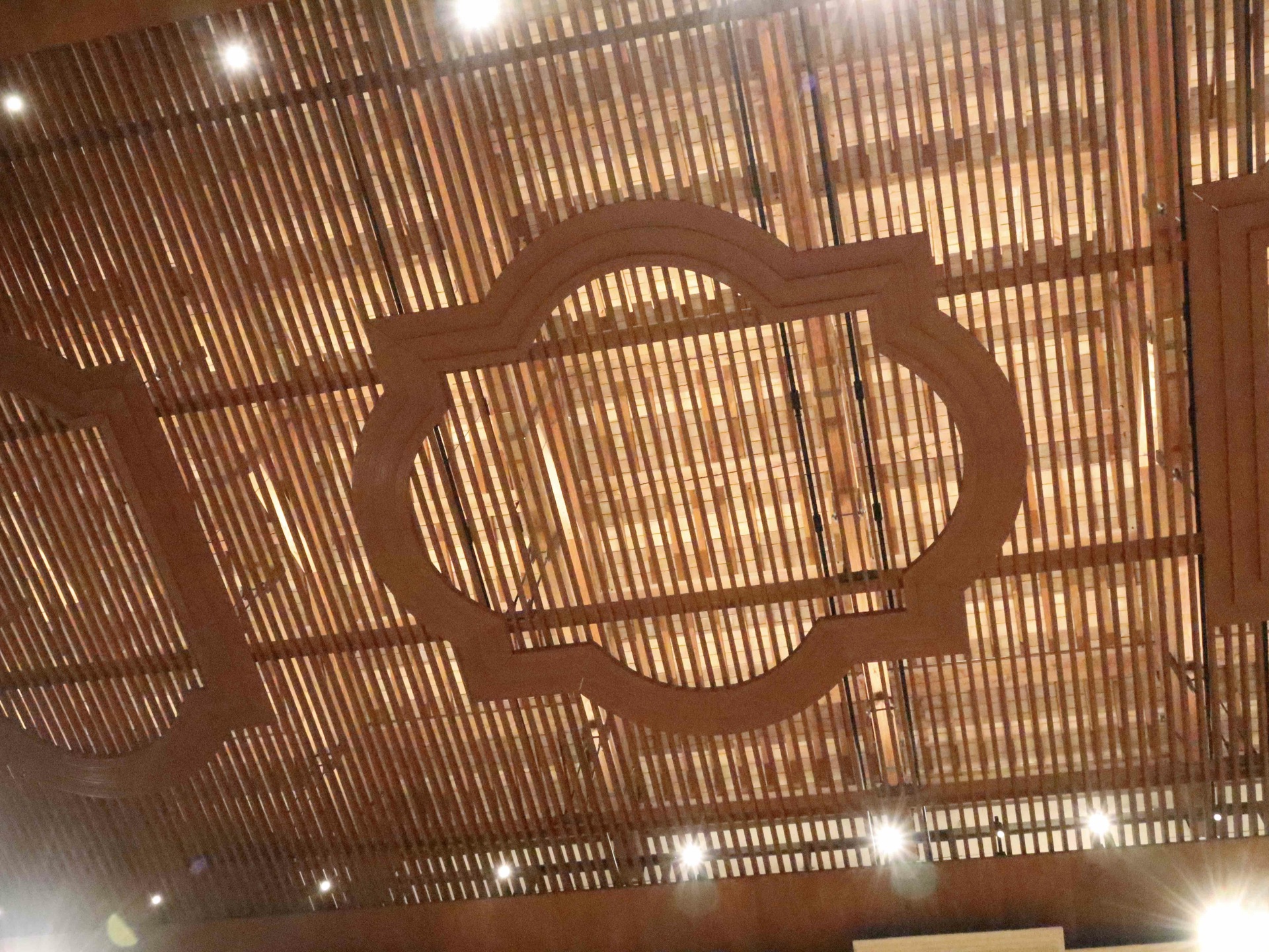 Il nuovo controsoffitto nella Basilica di San Benedetto a Norcia. Foto Stefano Miliani