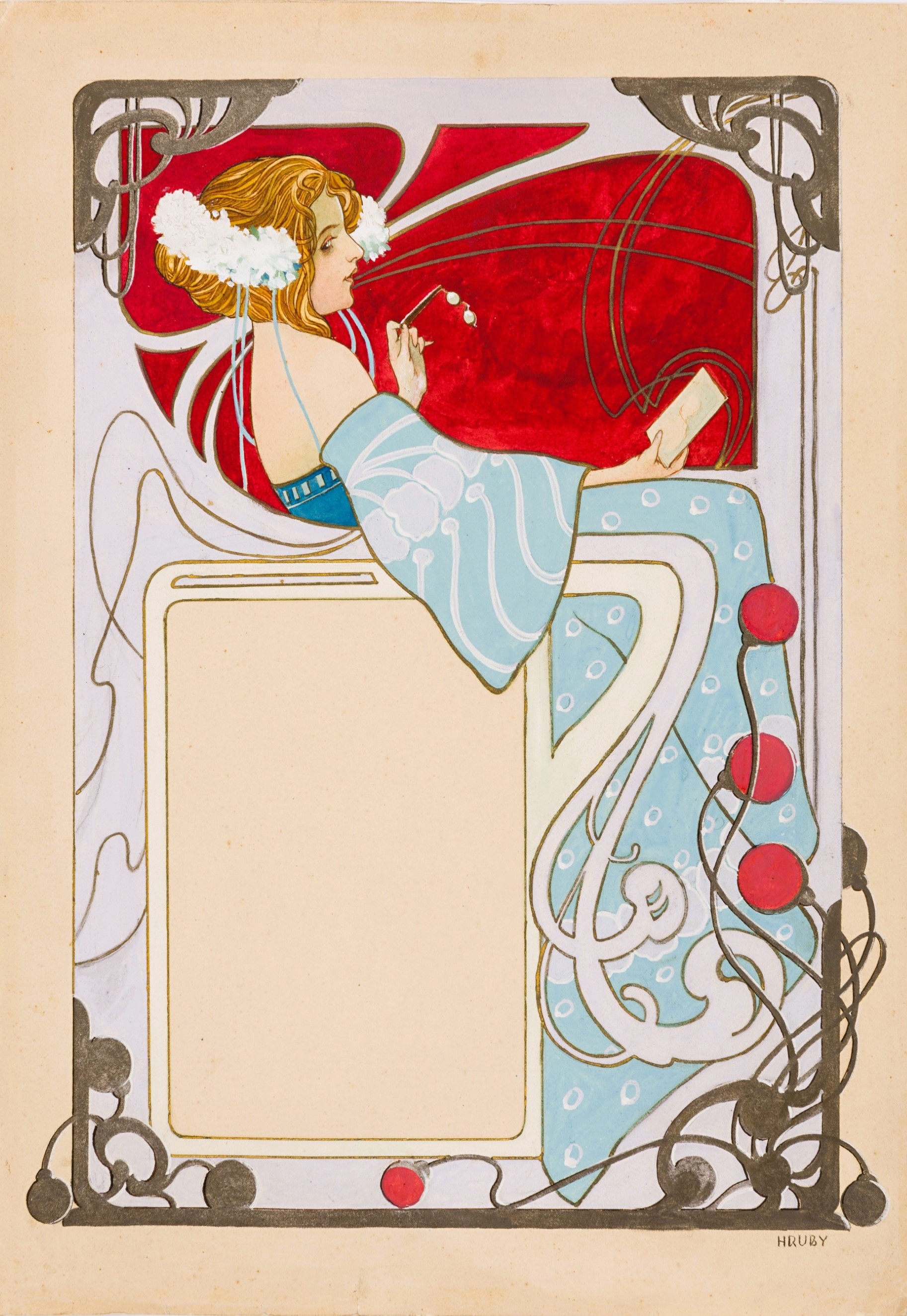 Sergius Hruby, «Una giovane donna che contempla un ritratto». Cortesia di Stephen Ongpin