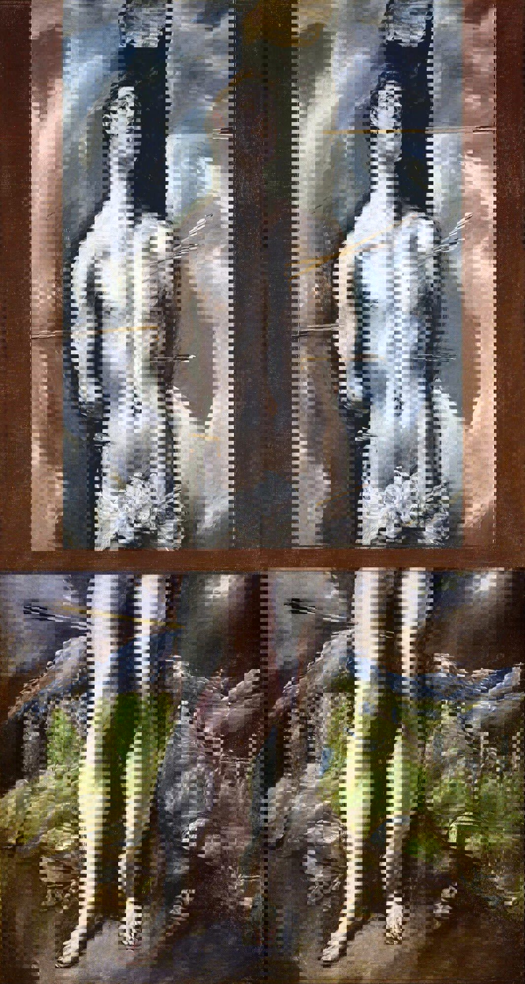 In passato un’opera del genere sarebbe stata classificata tra i quadri di El Greco di seconda scelta perché la tela è stata tagliata, manomessa e trasformata in forma ovale. Questo fatto grave avrebbe determinato una stima infinitamente più bassa, ora riscattata alla luce della sua potenza fotogenica. Forse in origine somigliava al «San Sebastiano» del Prado, anche lui modificato e tagliato nel corso del tempo, fino a quando sono rispuntate le sue gambe immerse in un paesaggio con la veduta di Toledo (donate al museo nel 1987 e rimontate col resto del corpo).