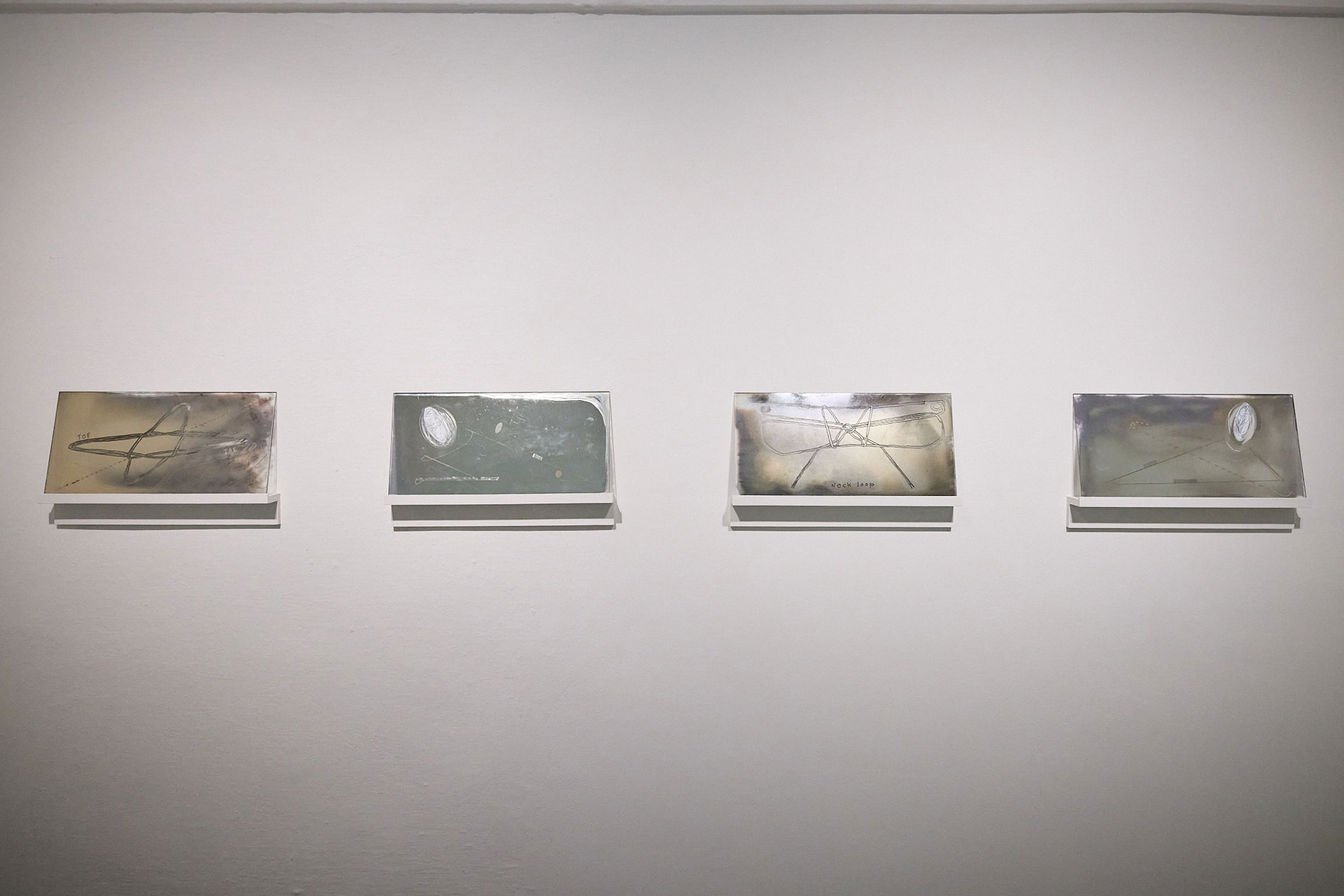 «Untitled (Same Time)» (2023) di Steffani Jemison, vetri trovati specchiati, grafite; pezzo unico 21,6x45,7 cm. Cortesia dell’artista / Galeria Madragoa. Foto Edoardo Piva. Proprietà della Fondazione per l’Arte Moderna e Contemporanea CRT in comodato al Castello di Rivoli Museo d’Arte Contemporanea