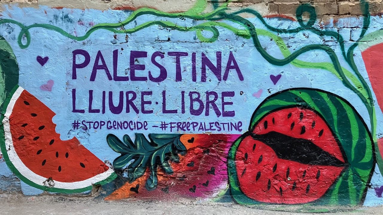 Un murale dipinto su un muro a Barcellona, «Palestina Libre». Photo: B. de los Arcos