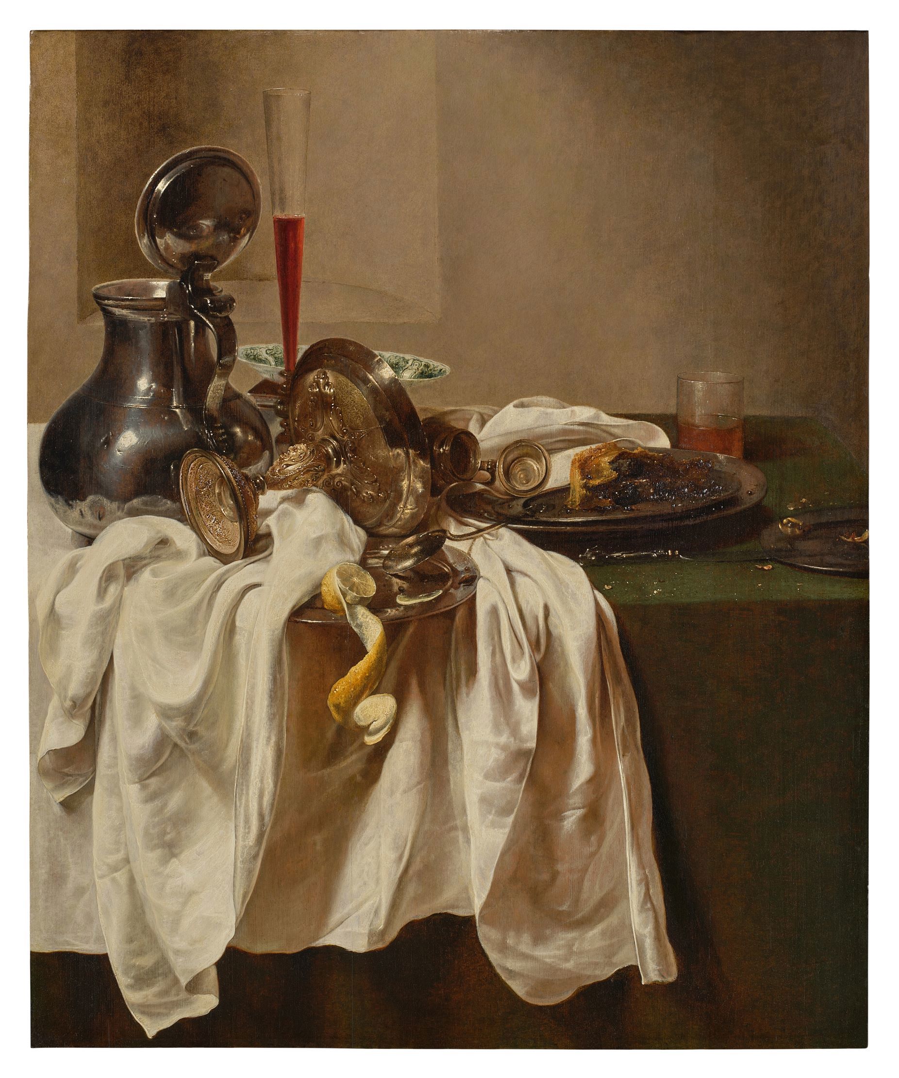 Jan Jansz. den Uyl the Elder, Still Life with a Pewter Jug, an Overturned Tazza, Glassware Pewter Dishes, and Other Objects on a Tabletop. Courtesy of Sotheby’s