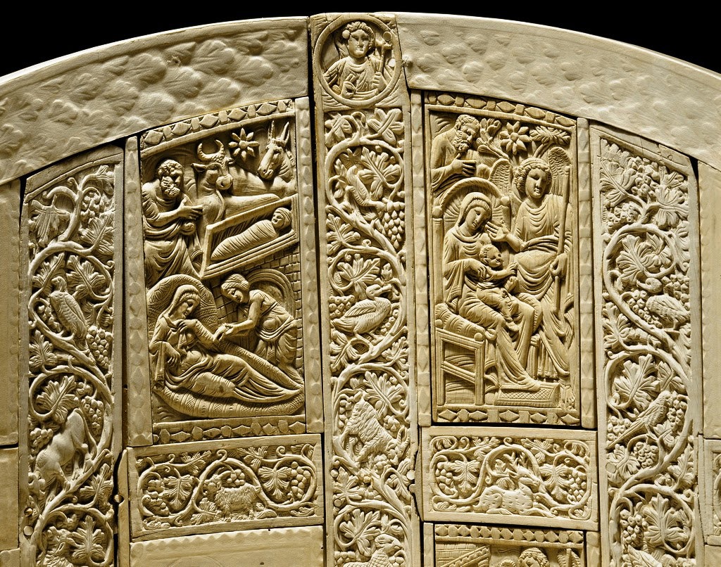 «Natività di Gesù» (VI secolo), formella della cattedra di Massimiano, Ravenna, Museo Arcivescovile