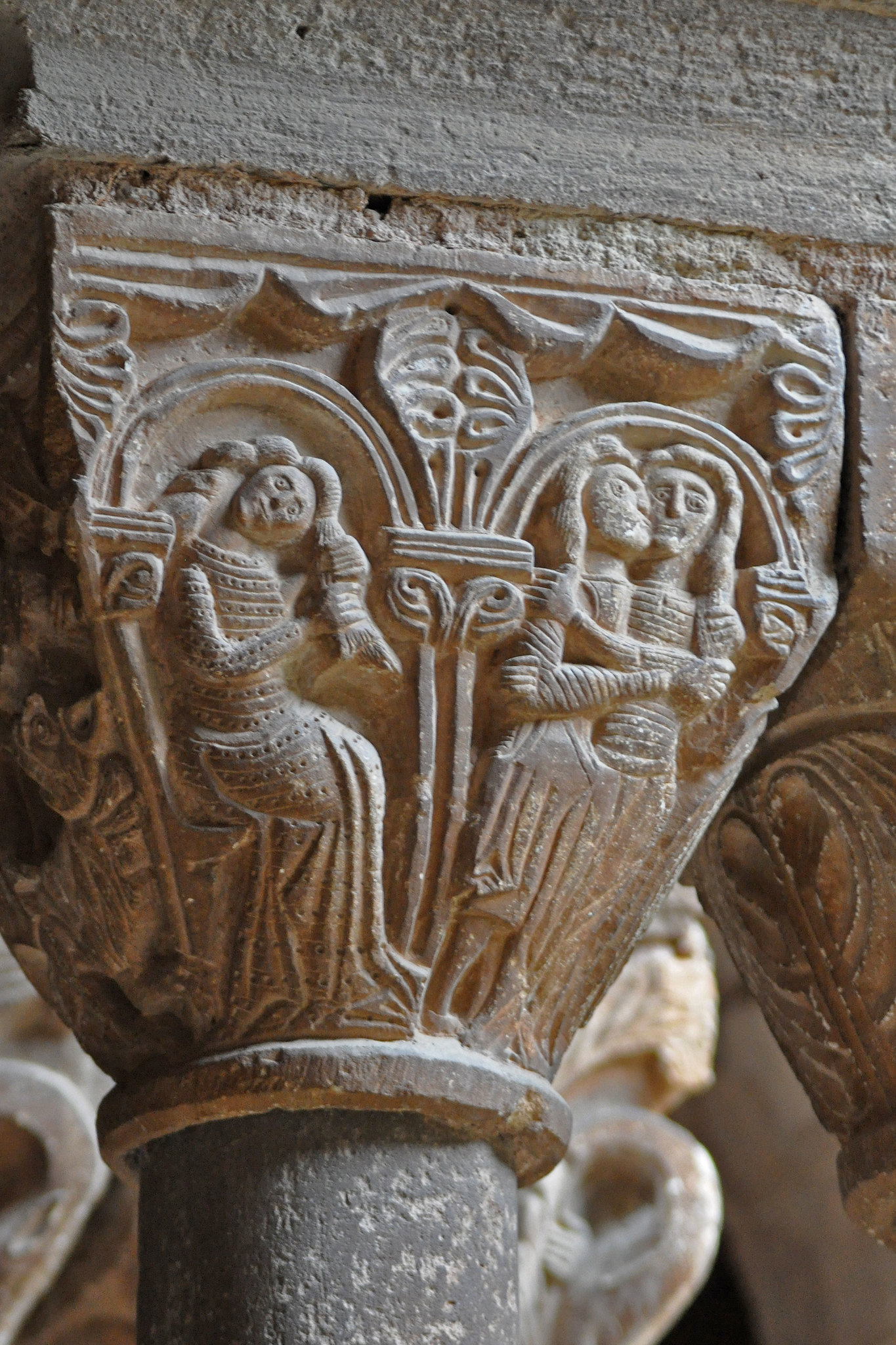 «Una donna si fa bella e incontra l’amante» (XII-XIII secolo), capitello del chiostro, Monastero di Santa Maria, L’Estany (Spagna)