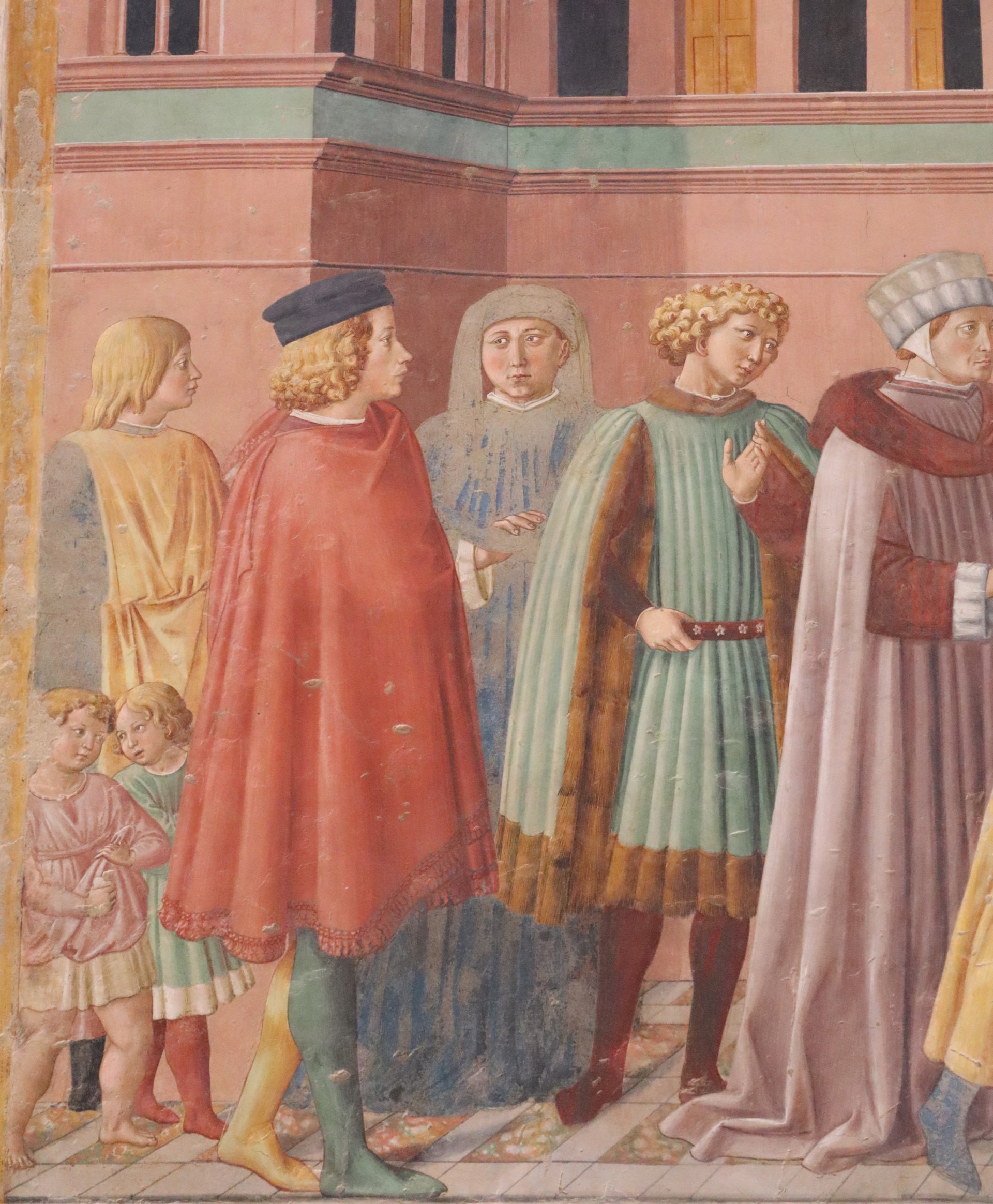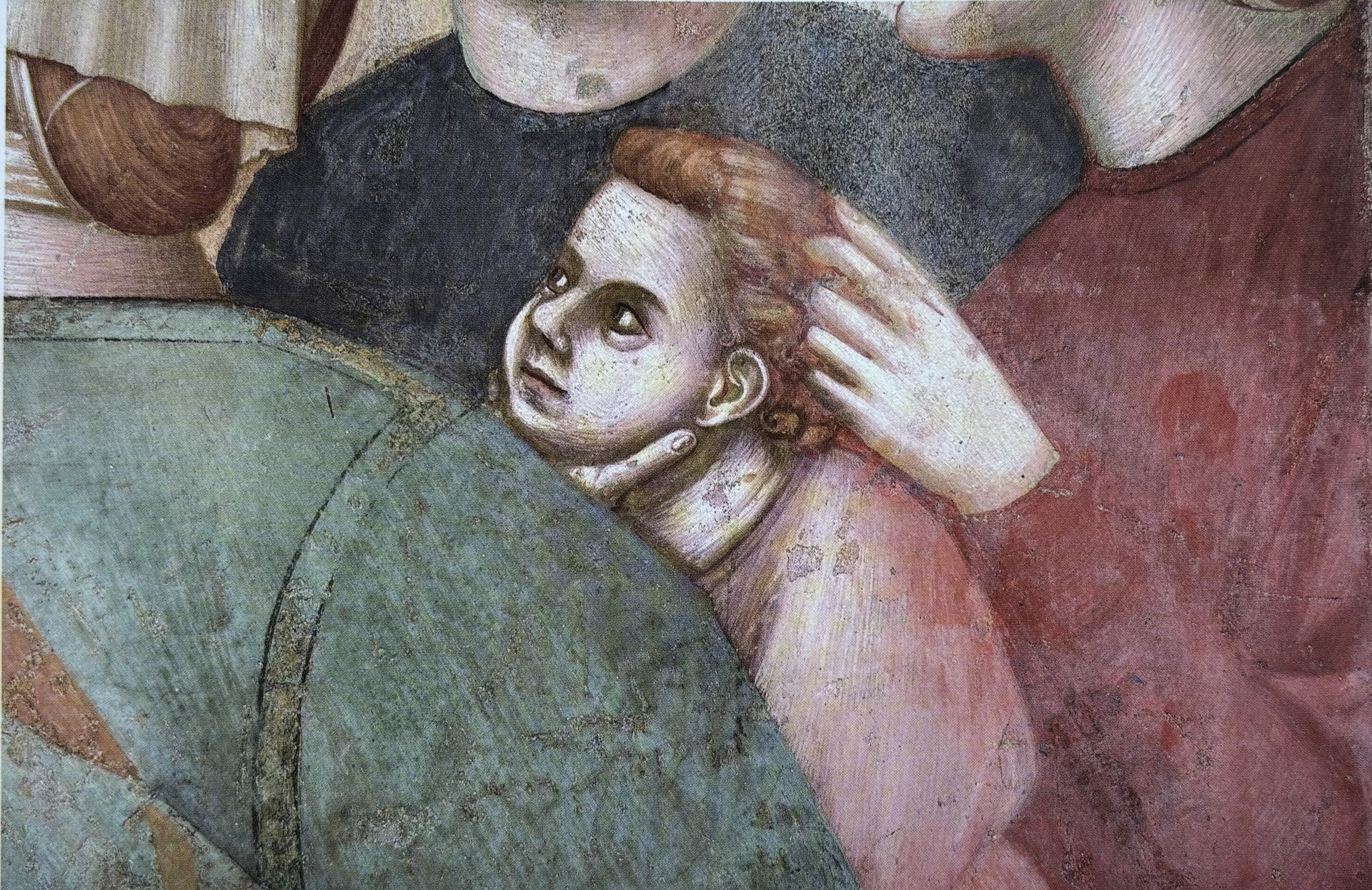 Giotto, particolare dalla scena precedente, con il bambino annoiato e distratto