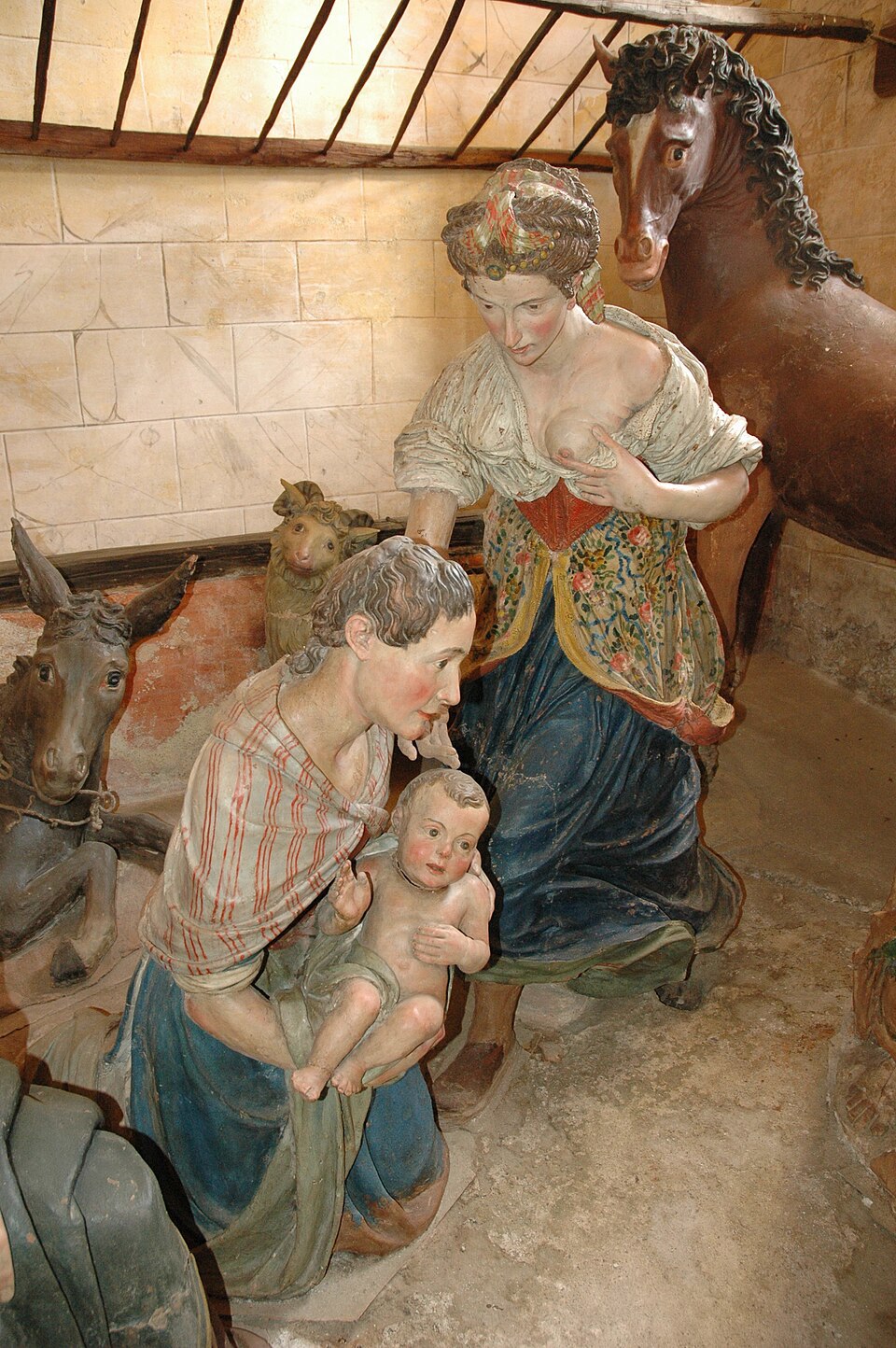 Concentrata generalmente in un’unica scena (che pure accosta istanti diversi), la raffigurazione della nascita di Francesco trovò espressione insolitamente ampia nella prima delle venti cappelle del Sacro Monte di Orta, interamente dedicato al santo. La cappella della Nascita accoglie infatti i coloratissimi affreschi di Giacomo Filippo e Bernardo Monti e, nella cappelletta/stalla oltre l’arco santo, le statue policrome a grandezza naturale di Cristoforo Prestinari, entrambi realizzati a inizio XVII secolo. Nella stalla è messa in scena una nascita vera. Il realismo di corpi, abiti, espressioni e gesti non intacca tuttavia il neonato: grazioso e persino benedicente come un Gesù bambino, ad anticipare l’Alter Christus che diventerà.