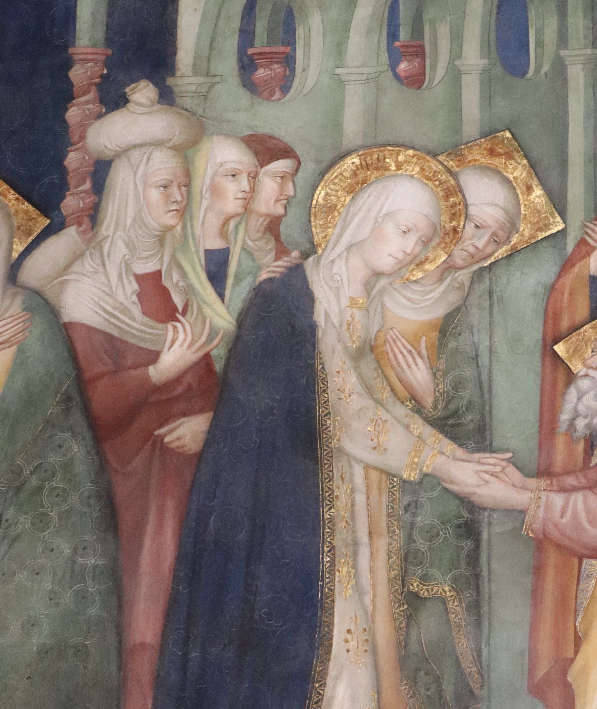 Lorenzo e Jacopo Salimbeni, «Visita di Maria a Elisabetta e Zaccaria», 1416 ca, Urbino, Oratorio di San Giovanni Battista (particolare)