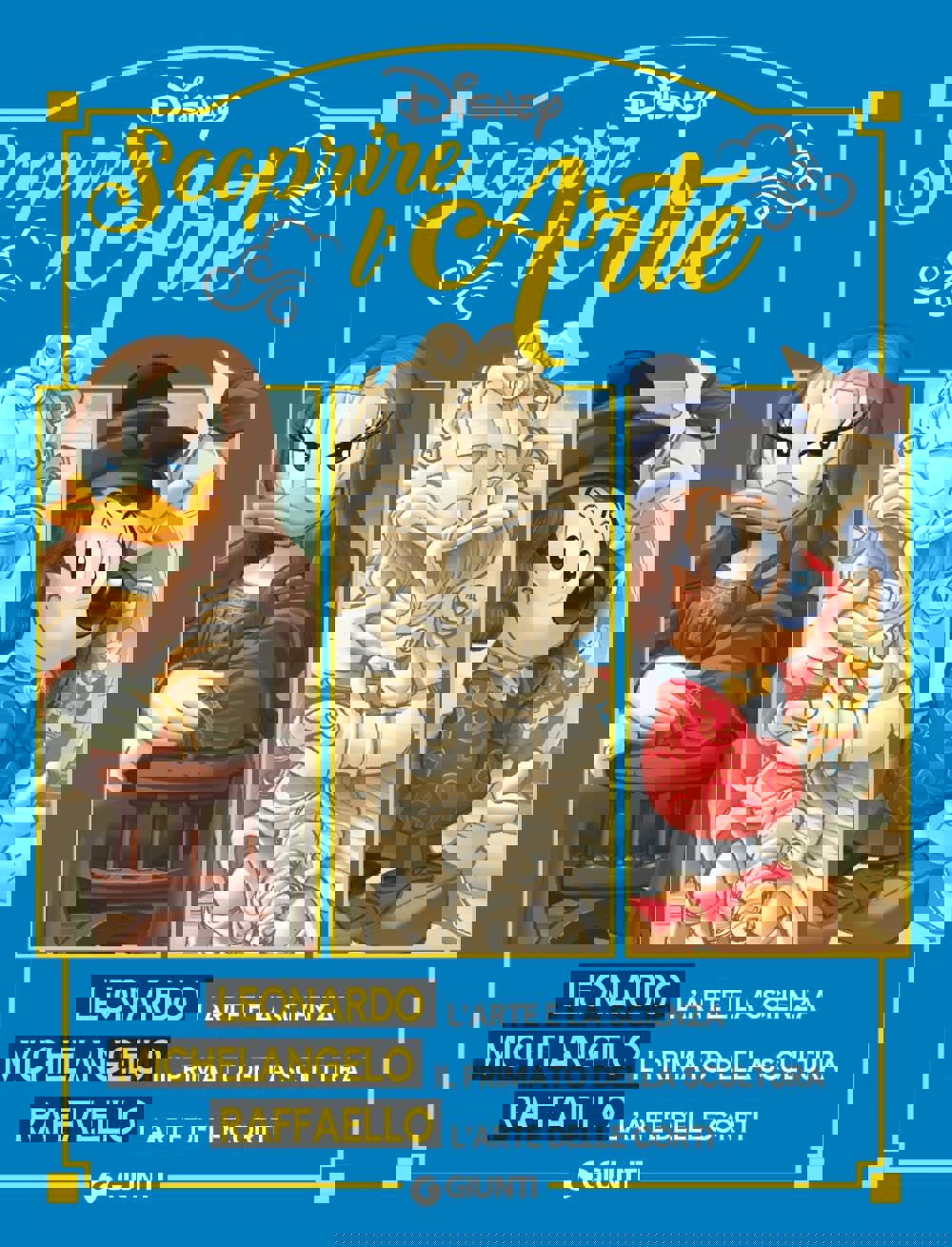 Il Rinascimento si anima tra le pagine di Scoprire l’arte. Leonardo, Michelangelo, Raffaello, grazie all’incontro prodigioso tra i giganti del genio italiano e la verve inesauribile dei personaggi Disney. Immaginate Leonardo che si ritrova a discutere di prospettiva con Pippo e Topolino, Michelangelo che si destreggia tra il «Giudizio Universale» e le trovate di Paperino; Raffaello che, con la grazia delle sue Madonne, intenerisce Minni. Il volume si suddivide in tre capitoli dedicati ai maestri, in cui si alternano approfondimenti sulle vite e le opere a fumetti, in cui i protagonisti Disney si muovono tra botteghe, affreschi e città storiche. La prosa semplice, il linguaggio a fumetto e le spiritose illustrazioni non rinunciano alla trasmissione di concetti complessi, in cui viene restituita la portata rivoluzionaria delle invenzioni leonardesche, la potenza espressiva del «non finito» michelangiolesco, la grazia compositiva di Raffaello, facendo anche emergere le differenze stilistiche e le tensioni creative che hanno reso immortali questi artisti. I personaggi Disney agiscono come archetipi narrativi familiari, permettendo ai giovani lettori di identificarsi, trasformando la storia dell’arte in un’avventura coinvolgente, e rendendo l’apprendimento un’esperienza emotiva e creativa, capace di lasciare un ricordo duraturo.