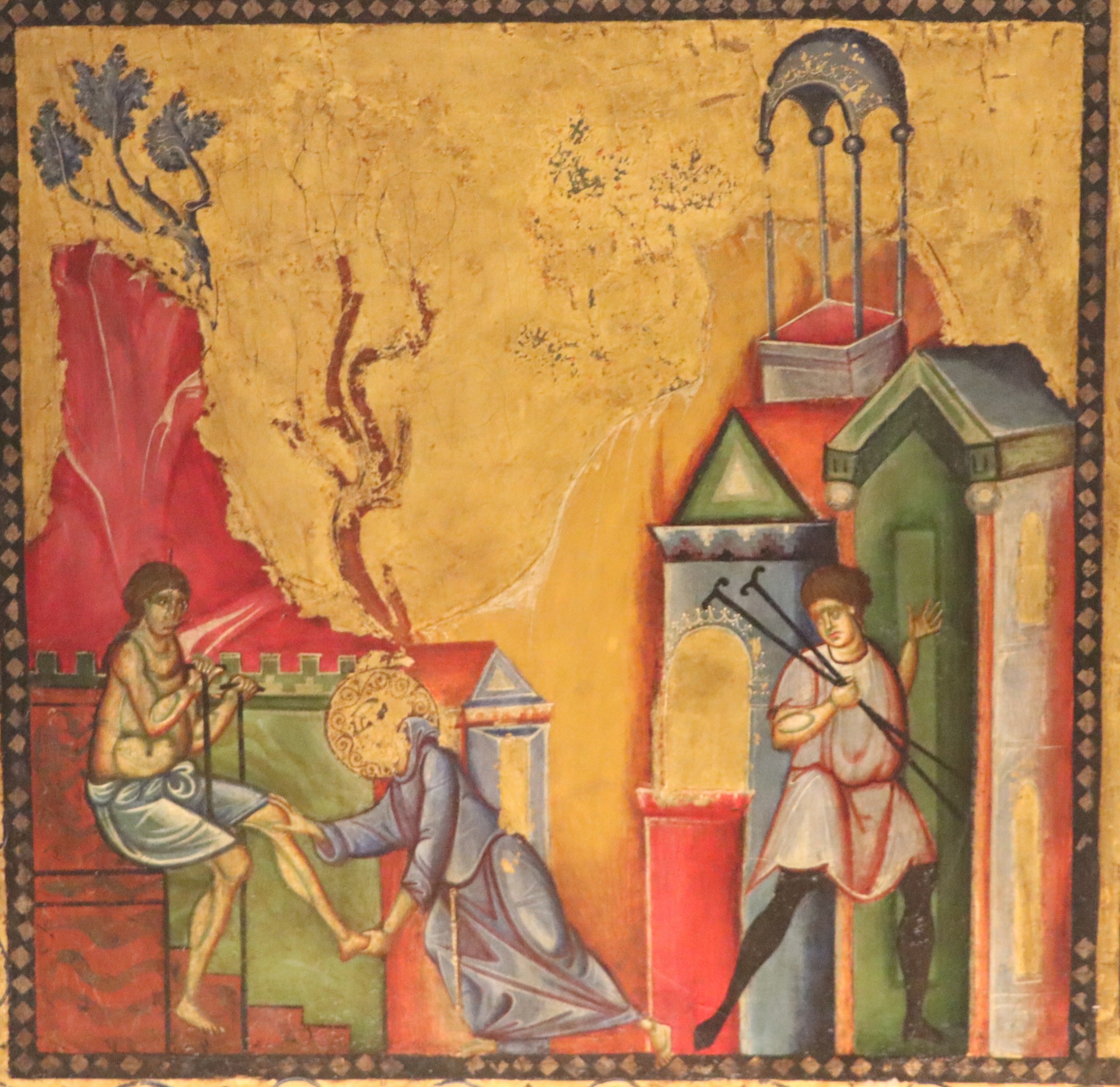 «San Francesco risano uno storpio», episodio laterale da «San Francesco e miracoli post mortem», 1250-60 ca, Museo del Tesoro del sacro convento, Assisi