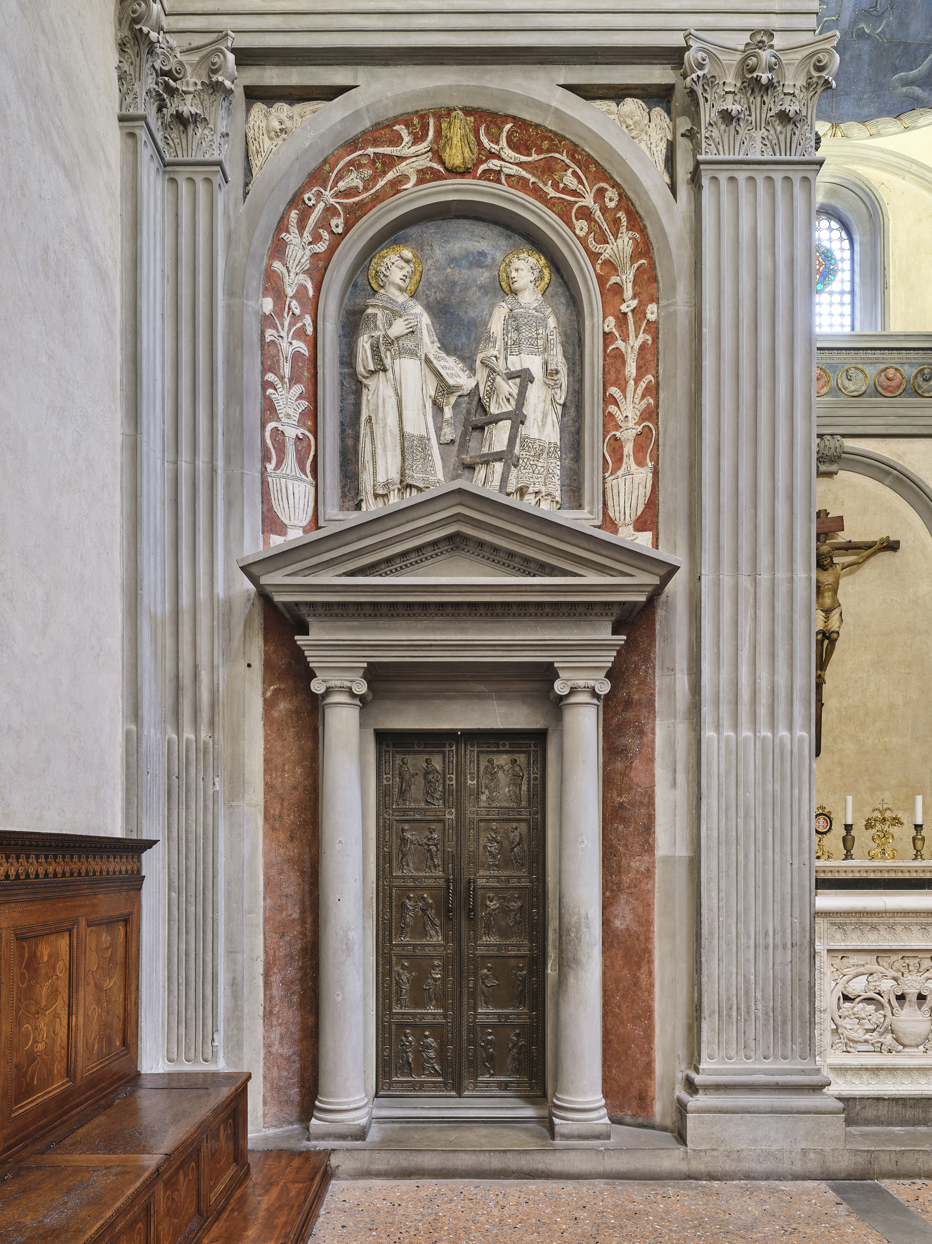 Una veduta della porta Apostoli nella Sagrestia di San Lorenzo dopo il restauro. Foto OPD