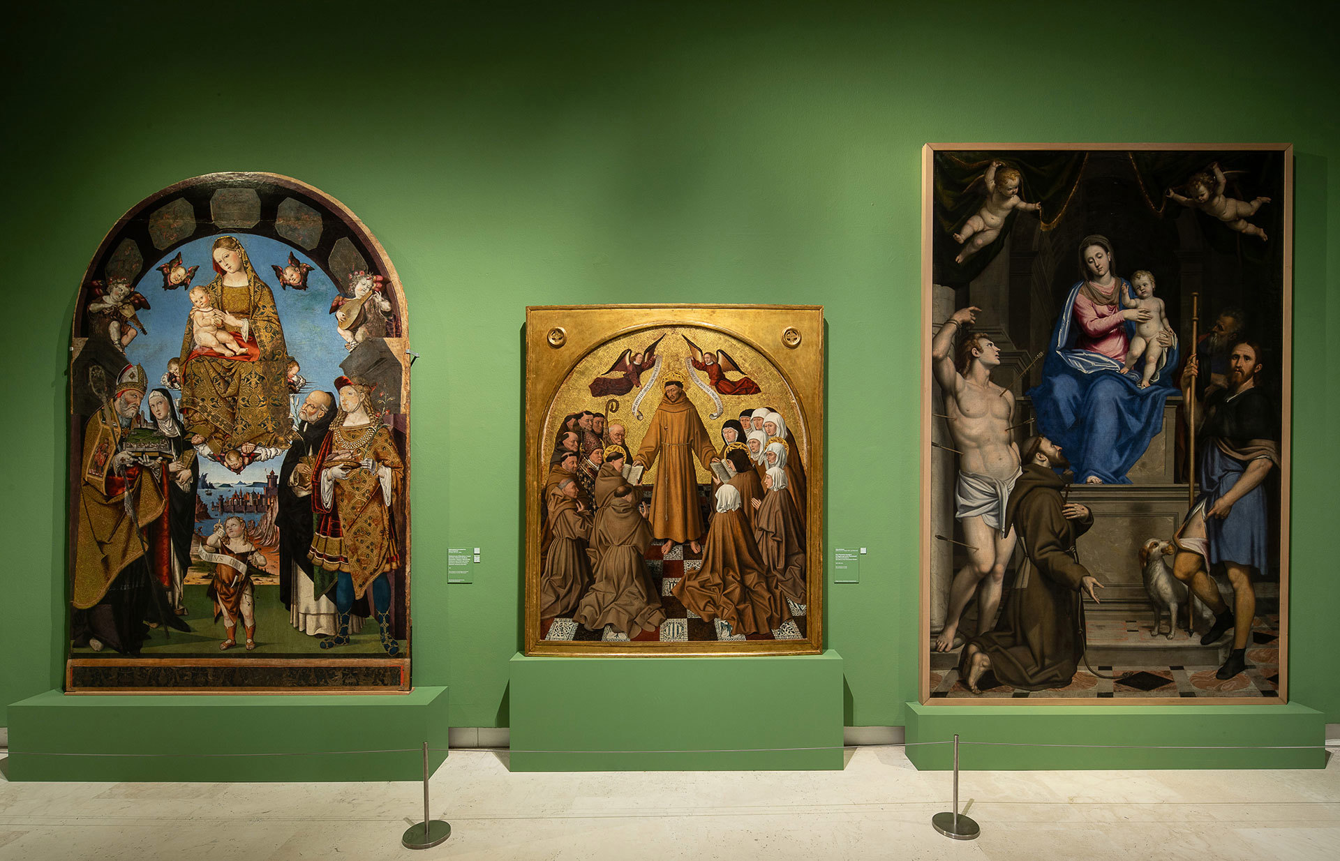 Era offuscato dai residui di un trattamento effettuato negli anni Settanta del Novecento, il pannello marmoreo raffigurante l’episodio di Ercole che uccide la cerva di Cerinea (prima metà del VI secolo) dal Museo Nazionale di Ravenna, mentre la campagna diagnostica che ha accompagnato il restauro della tavola San Francesco consegna la Regola agli ordini francescani di Colantonio (1445-1450) ha consentito una migliore comprensione di materiali e procedimenti esecutivi. La tavola a olio e tempera, custodita dal Museo e Real Bosco di Capodimonte, è contraddistinta da varie tecniche di doratura e la pittura imita, con efficace realismo, pietre preziose e perle. La grande pittura seicentesca, grande anche in termini dimensionali, è presente con il monumentale olio su tela Lotta tra Perseo e Fineo di Luca Giordano. Il dipinto, realizzato nel 1680 circa, dalle collezioni dei Musei Nazionali – Palazzo Reale di Genova, possiede una forte tensione teatrale e drammatica, analogamente all’olio su tela Il ritorno del figliol prodigo (1653-1661) di Mattia Preti. La pulitura del quadro, proveniente dalla Pinacoteca Civica di Reggio Calabria, ha rimosso lo strato di vernici ingiallite, migliorandone la leggibilità e consentendo la collocazione temporale al periodo napoletano del pittore.