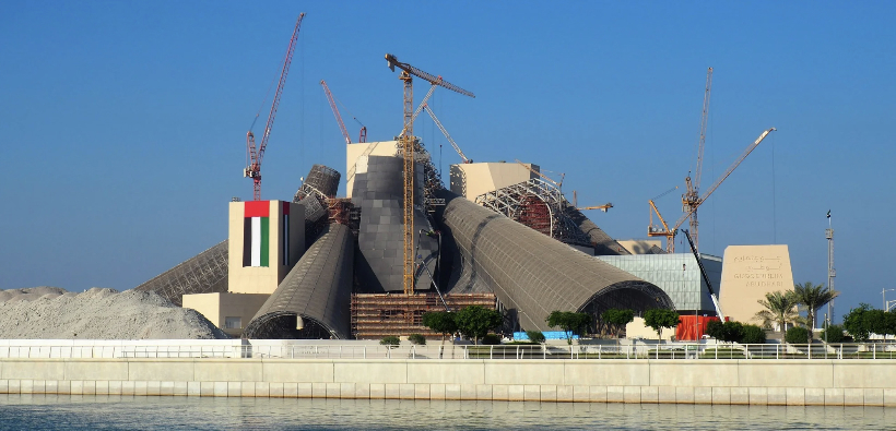 Attualmente in costruzione nel distretto culturale di Saadiyat Island ad Abu Dhabi, prossimo alla sede locale del Louvre e del Zayed National Museum (progettato da Foster+Partners e da poco inaugurato), una volta completato sarà il più grande dei musei Guggenheim. L’edificio è stato progettato dall’architetto Frank Gehry, già autore della sede di Bilbao e scomparso lo scorso dicembre. Dopo l’annuncio del progetto nel 2006, i lavori iniziarono nel 2011 ma furono presto sospesi e da allora hanno subito una serie di ritardi nella costruzione. Il museo fa parte di un più ampio complesso di istituzioni artistiche e culturali di Saadiyat Island pensato per attrarre turisti internazionali. La collezione del museo è destinata a concentrarsi su arte moderna e contemporanea proveniente dall’Asia occidentale e meridionale e dal Nord Africa. La costruzione è in fase avanzata e dovrebbe essere completata entro la fine del 2025, con l’inaugurazione prevista nel corso del 2026, anche se non è stata ancora annunciata una data ufficiale.
