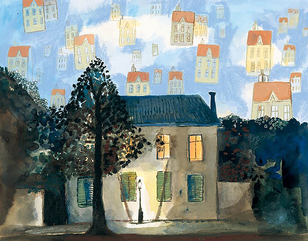 Una tavola di Ericavale Morello per il volume «Vendesi casa d’artista» (pubblicato nel 2023 da Camelozampa): la casa di René Magritte