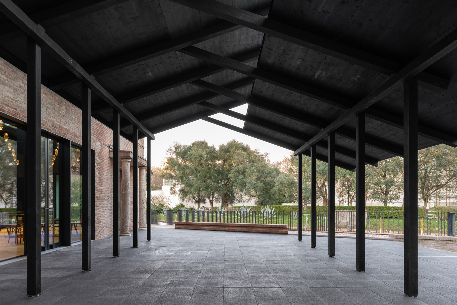 Sotto la loggia del Padiglione centrale riqualificato dal Ministero della Cultura. Foto: Marco Cappelletti. Marco Cappelletti Studio. Courtesy La Biennale di Venezia