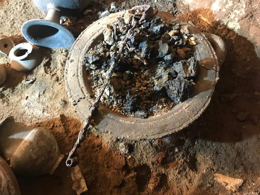 Avevamo un’ipotesi sul preciso numero di pezzi che componevano, abitualmente, i corredi funebri, ma i contesti saccheggiati non ci permettevano di esserne certi. Questo ritrovamento ci ha dato finalmente la conferma, si trattava di set ben precisi. Erano servizi per due persone: due vasi per bere, due per versare e così via. Nella tomba appena ritrovata, abbiamo reperito, oltre al corredo di vasi, alla fuseruola e al braciere, uno strumento in ferro, forse un alare per il fuoco, e un’olla cineraria, contenente le ceneri della donna. L’olla era posta su un bancone in pietra, scavato nella roccia, e in basso, sul piano vero e proprio della tomba, era posto il corredo per il banchetto. Altra scoperta molto importante che abbiamo compiuto, è legata all’anfora trovata proprio accanto all’apertura della tomba. Si trattava probabilmente dell’ultimo atto del rito funebre, il vino veniva versato dall’anfora e questa era infine deposta accanto alla porta. Ora i reperti si trovano nel laboratorio di diagnostica e restauro di Montalto di Castro. Probabilmente li esporremo, a breve, in un museo locale. Intanto, dal 18 al 20 maggio, presenteremo questa scoperta e le altre compiute nel territorio, nell’ambito delle giornate di studio «Vulci work in progress».