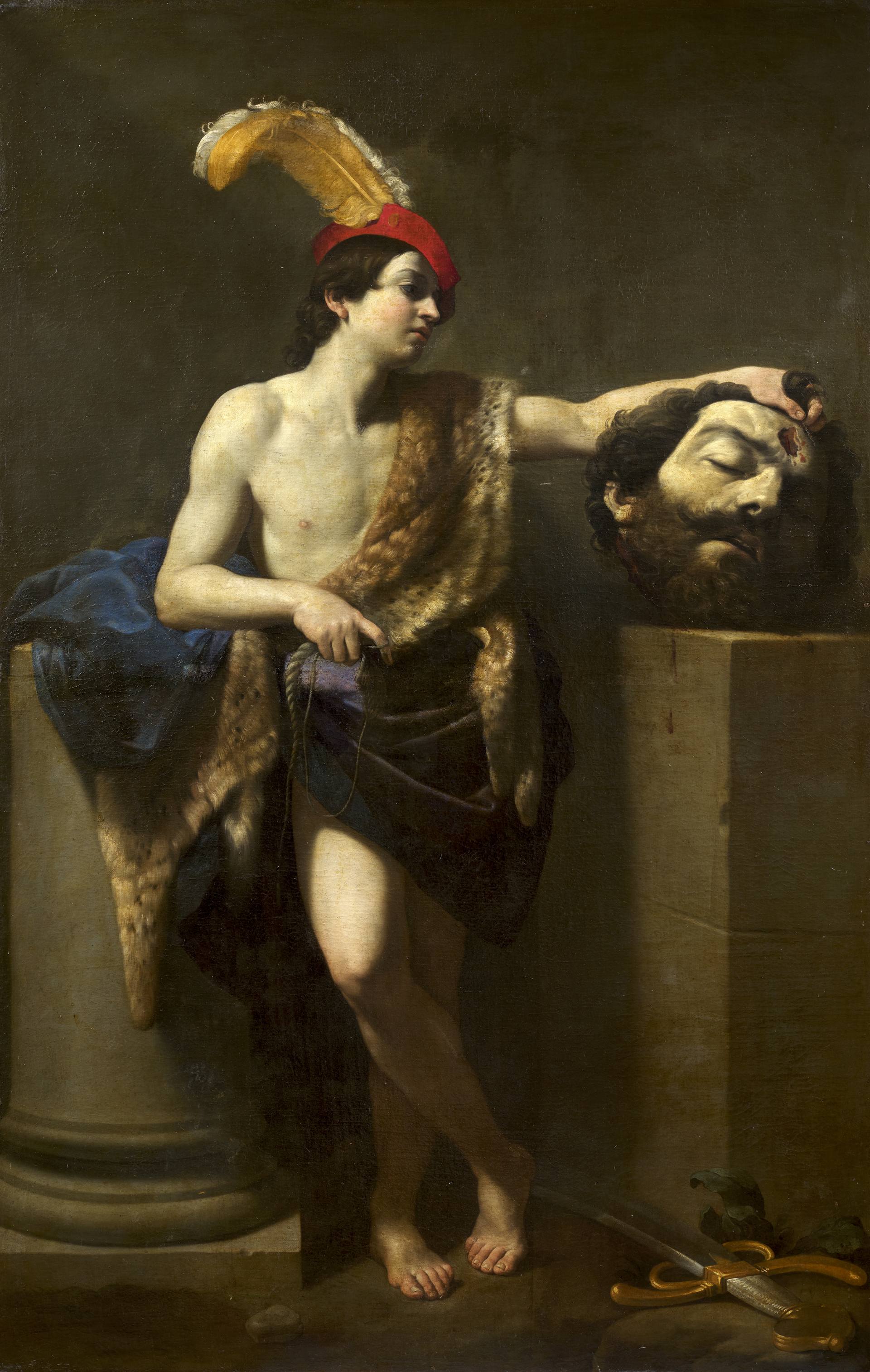 «Davide che contempla la testa di Golia» rappresenta un momento cruciale nell’evoluzione stilistica di Reni e della pittura italiana del primo Seicento. Lontano dalla teatralità trionfante di altri interpreti del tema biblico, il giovane eroe dipinto da Reni appare assorto, quasi turbato, mentre osserva la testa recisa del gigante. Il contrasto tra la grazia delicata di Davide e il crudo realismo della testa di Golia esprime una tensione profonda tra idealismo e brutalità, tra luce e ombra, tra Reni e il suo contemporaneo e rivale Caravaggio. L’opera è riconducibile alla cosiddetta tipologia «Créquy», che prende il nome dall’ambasciatore francese Charles III de Créquy, primo proprietario della versione oggi conservata al Louvre. La composizione è pressoché identica, con la testa del gigante rivolta verso destra, ma con variazioni che dimostrano la libertà autoriale con cui Reni realizzava più versioni autografe dello stesso soggetto.