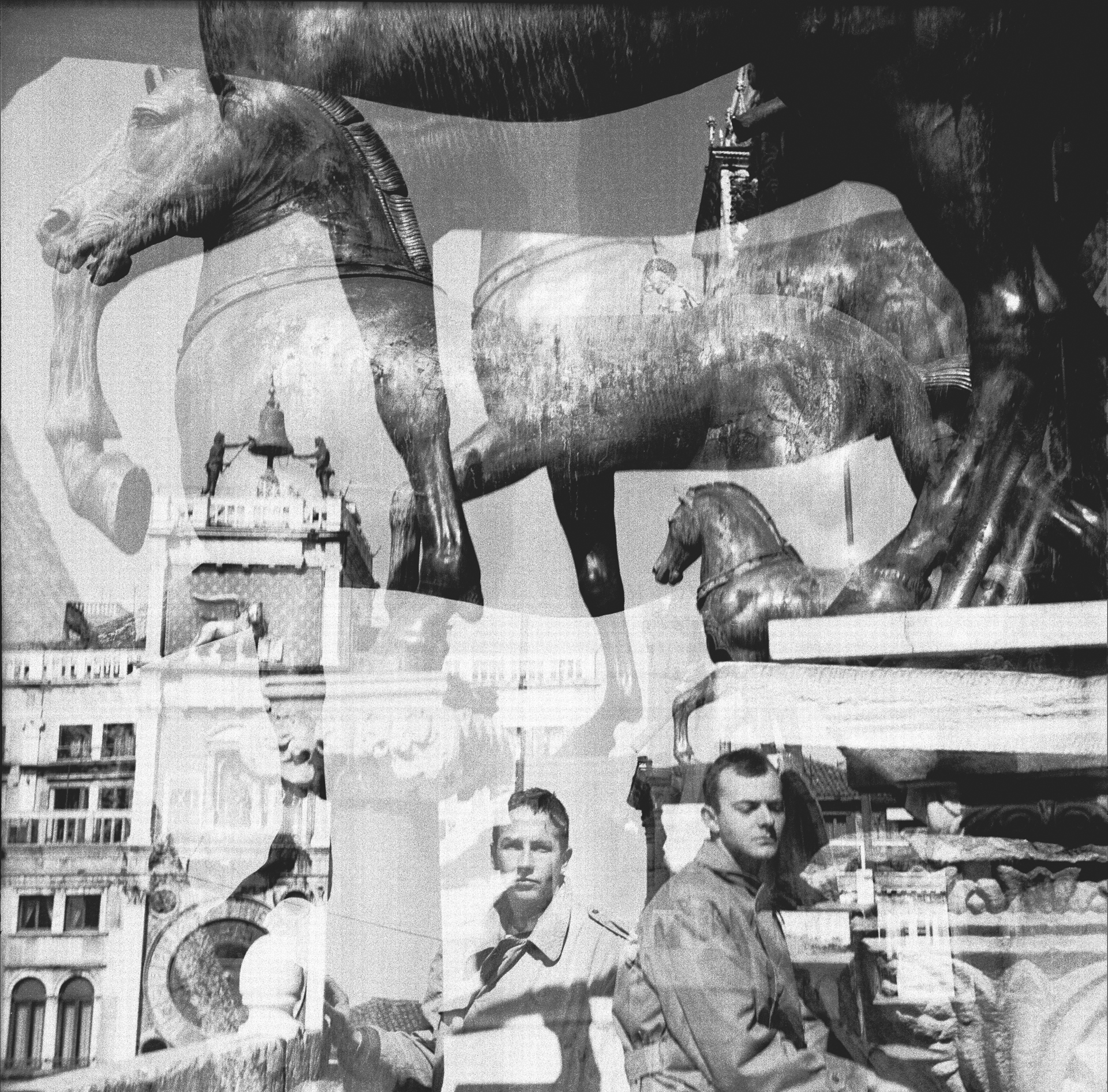 Bob + Cy, Venice, 1952. © 2011 Robert Rauschenberg Foundation, New York. Dal libro «Robert Rauschenberg. Un ritratto» di Calvin Tomkins edito da Johan & Levi