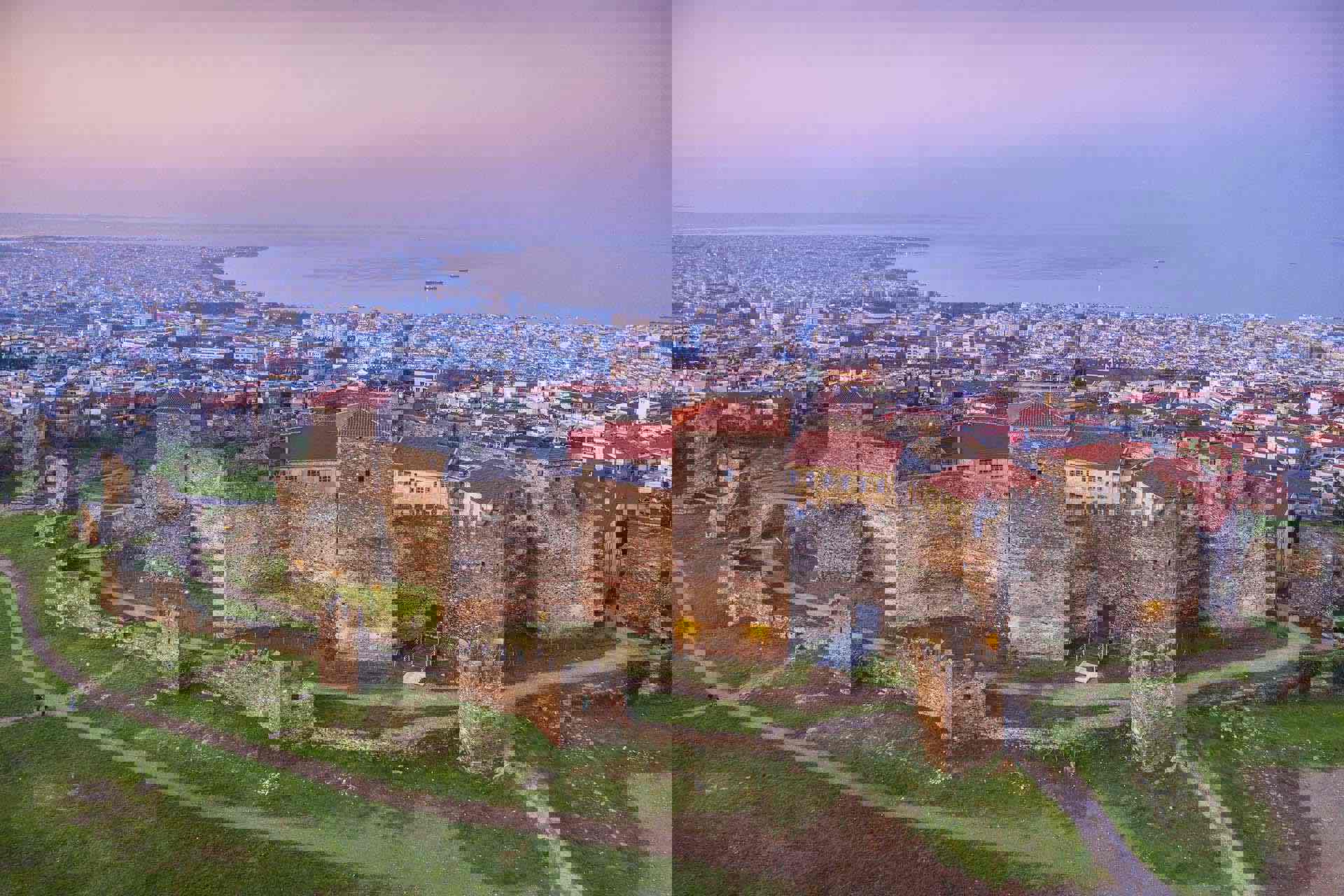 Una veduta di Salonicco, con l’antico casterllo bizantino in primo piano
